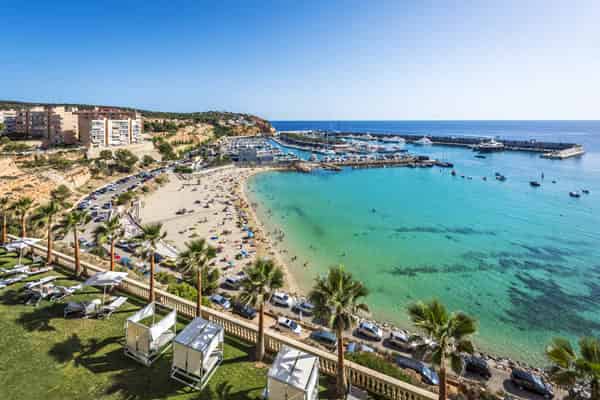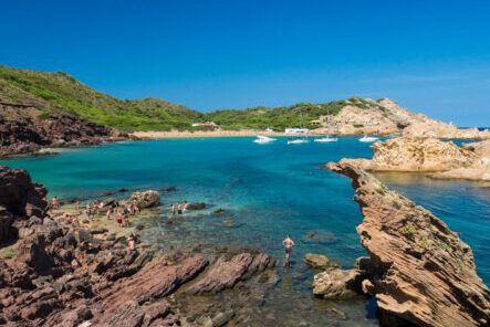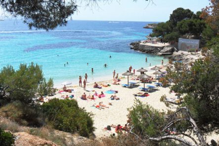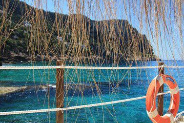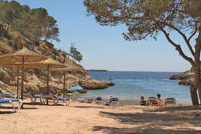 Das Wasser ist in der gesamten Bucht glasklar und bestens zum Baden, Schwimmen und Tauchen geeignet. Die zerklüftete Felsküste mit einem feinsandigen Strand und einer wilden, natürlichen Landschaft inmitten der immergrünen Natur ist ein wahres Paradies. An Land befindet sich einer der neueren Beach-Clubs der Insel – das Port Verd del Mar (www.portverd-delmar.com), das auch einen Shuttle-Service anbietet.