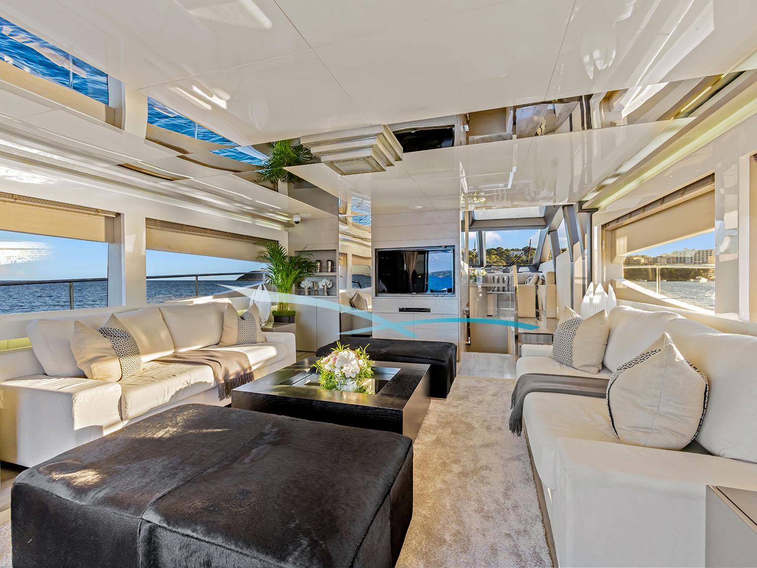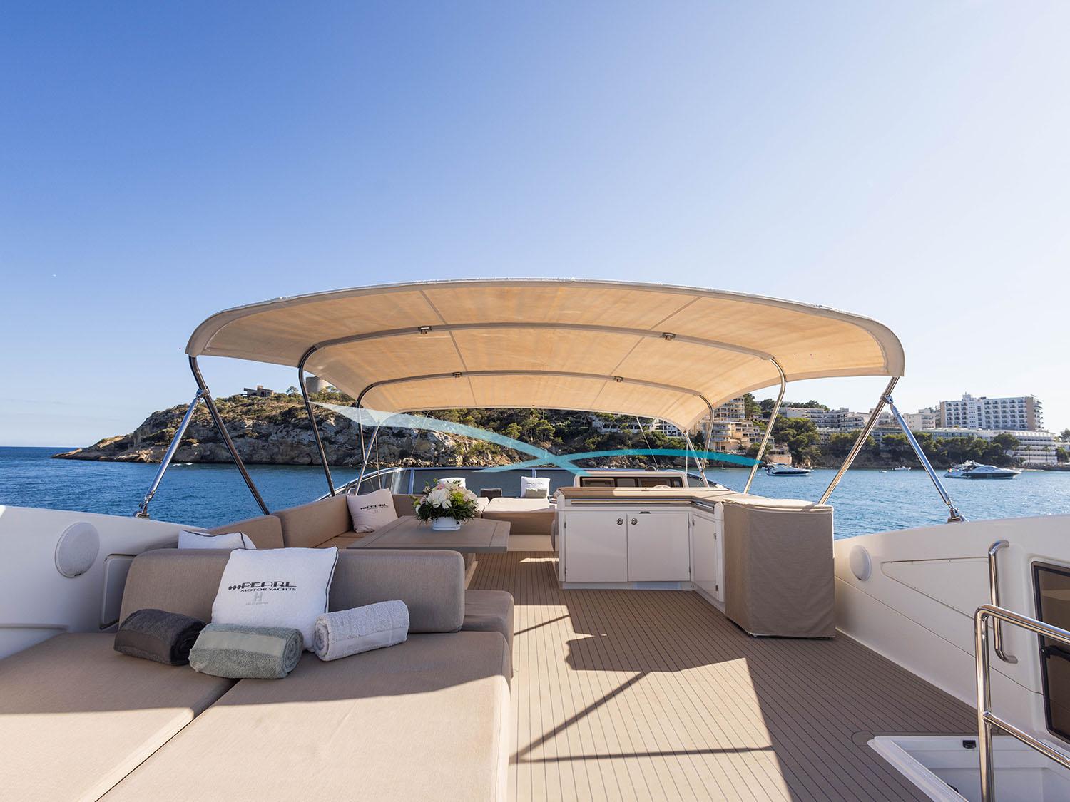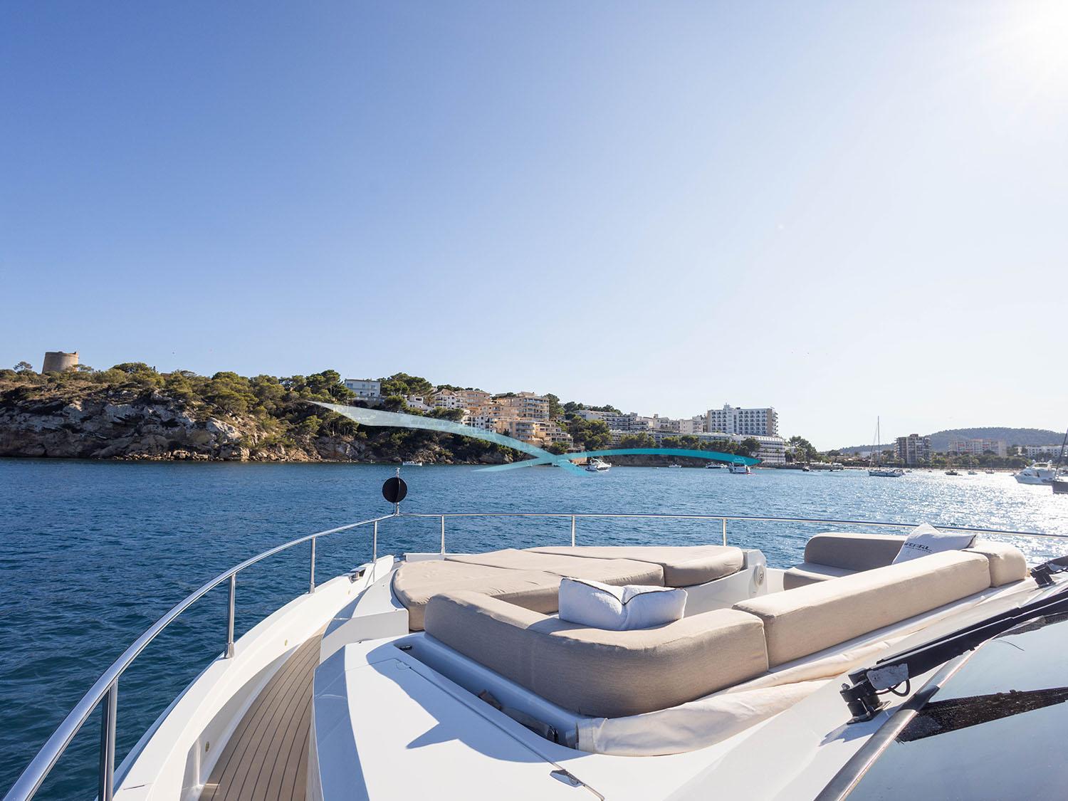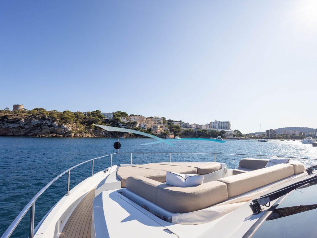 Die 2013 gebaute (Refit 2025) Yacht vereint moderne Eleganz mit Komfort. Sie eignet sie sich perfekt für Touren auf den Balearen. Flybridge, Sonnenliegen und eine große Sitzgruppe mit Esstisch bieten herrliche Ausblicke; das überdachte Aft-Deck eignet sich ideal für Mahlzeiten im Freien. Eine hydraulische Plattform ermöglicht einfachen Zugang zum Wasser.