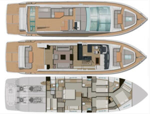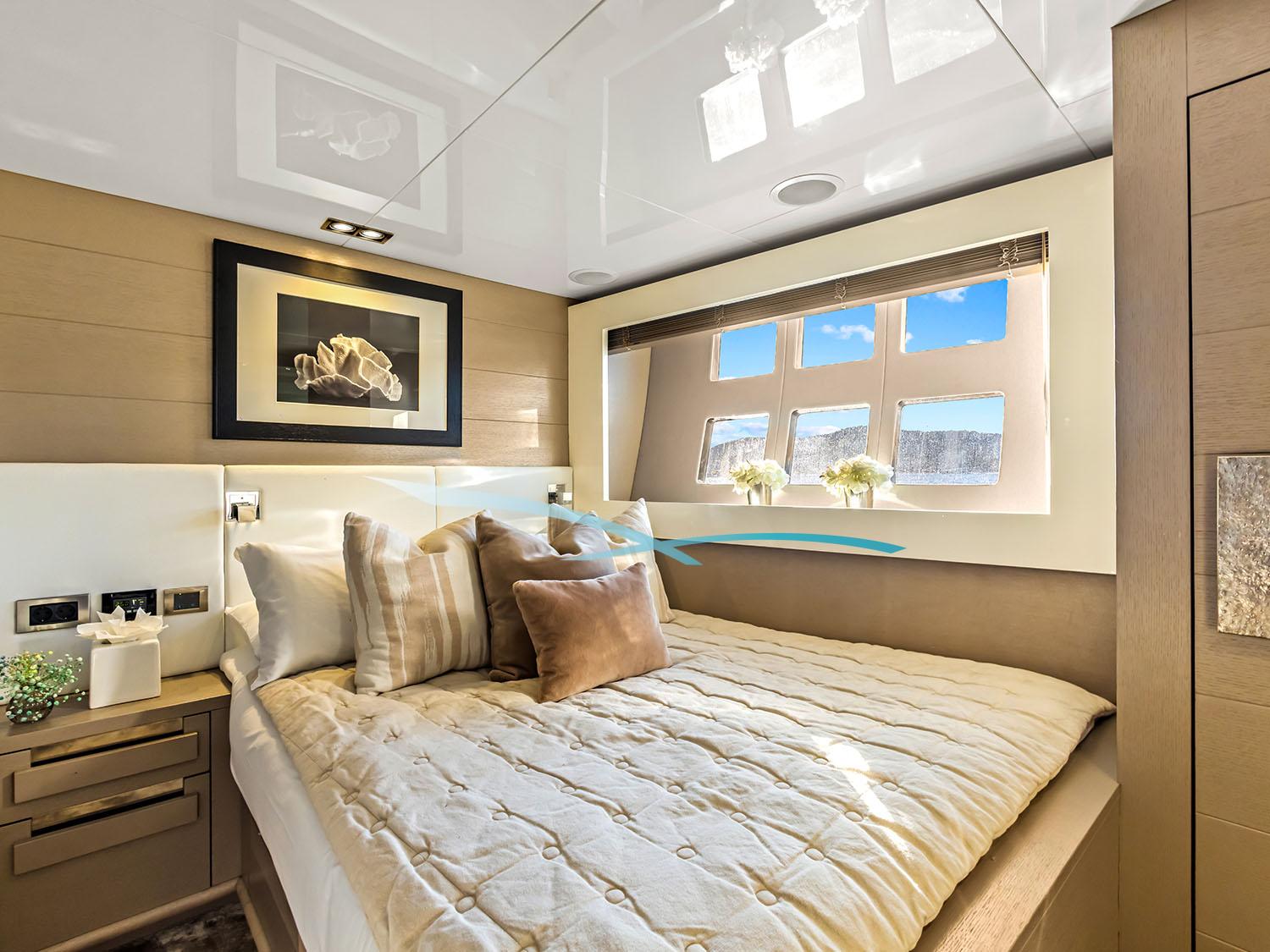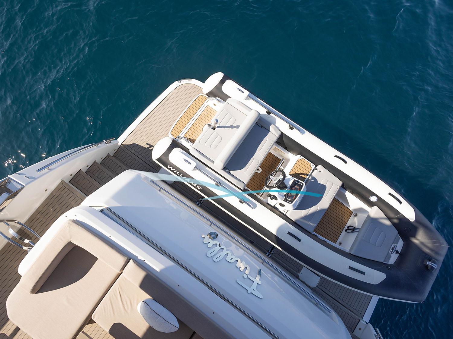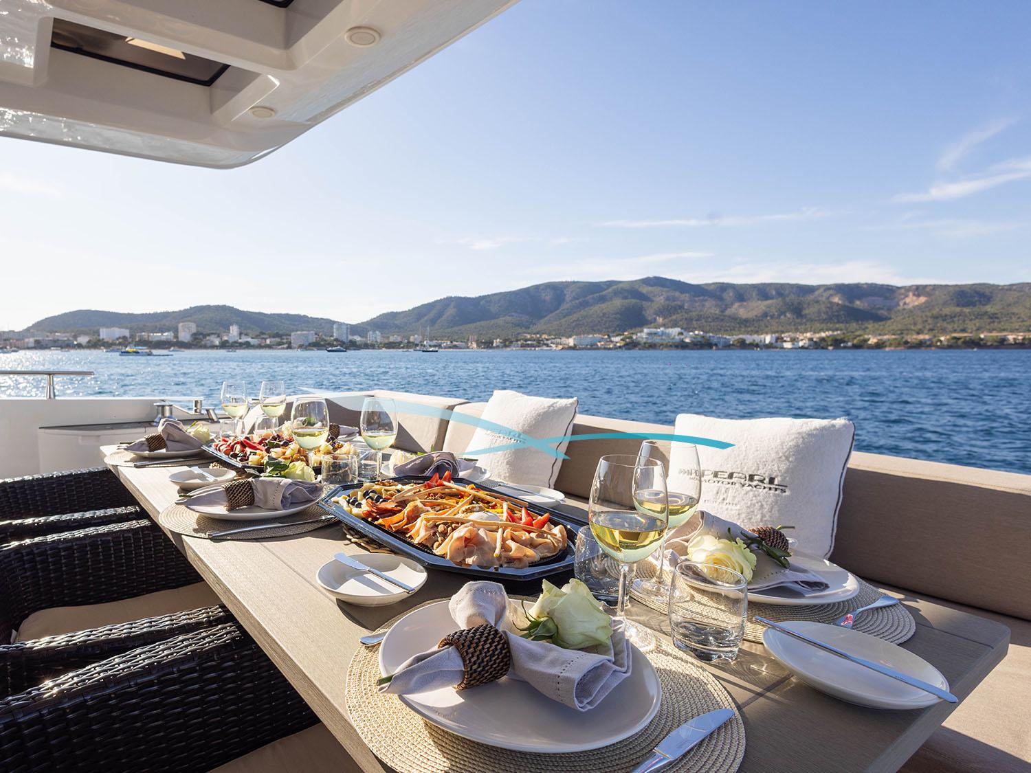 Die 2013 gebaute (Refit 2025) Yacht vereint moderne Eleganz mit Komfort. Sie eignet sie sich perfekt für Touren auf den Balearen. Flybridge, Sonnenliegen und eine große Sitzgruppe mit Esstisch bieten herrliche Ausblicke; das überdachte Aft-Deck eignet sich ideal für Mahlzeiten im Freien. Eine hydraulische Plattform ermöglicht einfachen Zugang zum Wasser.