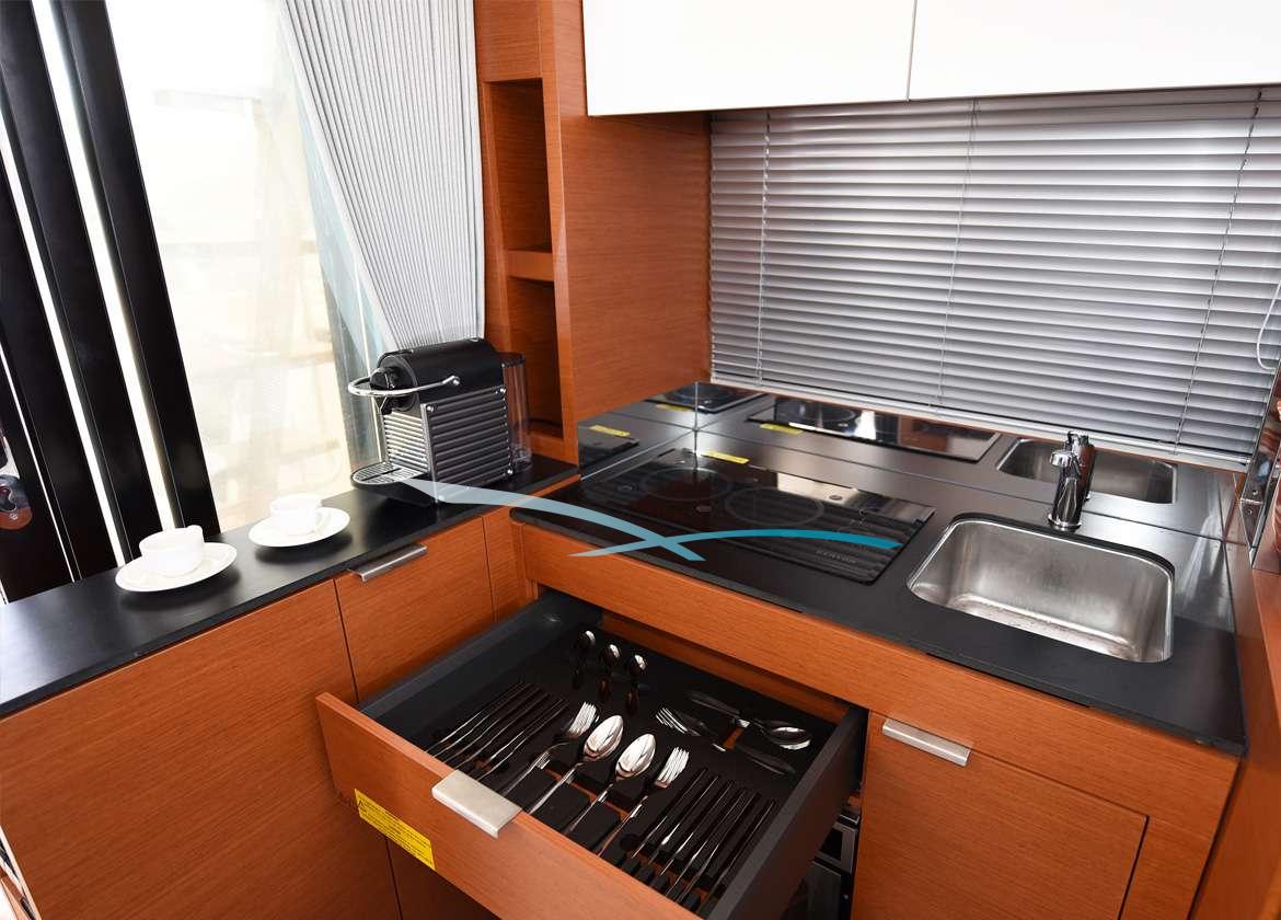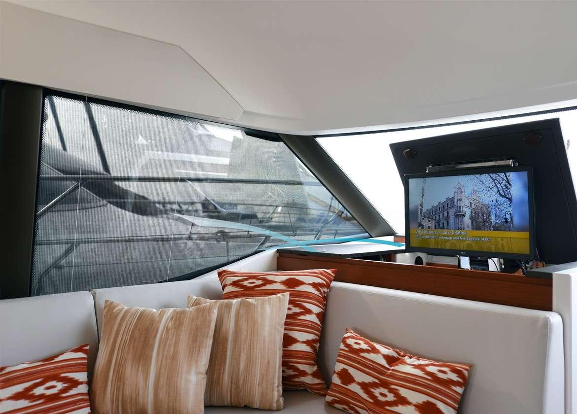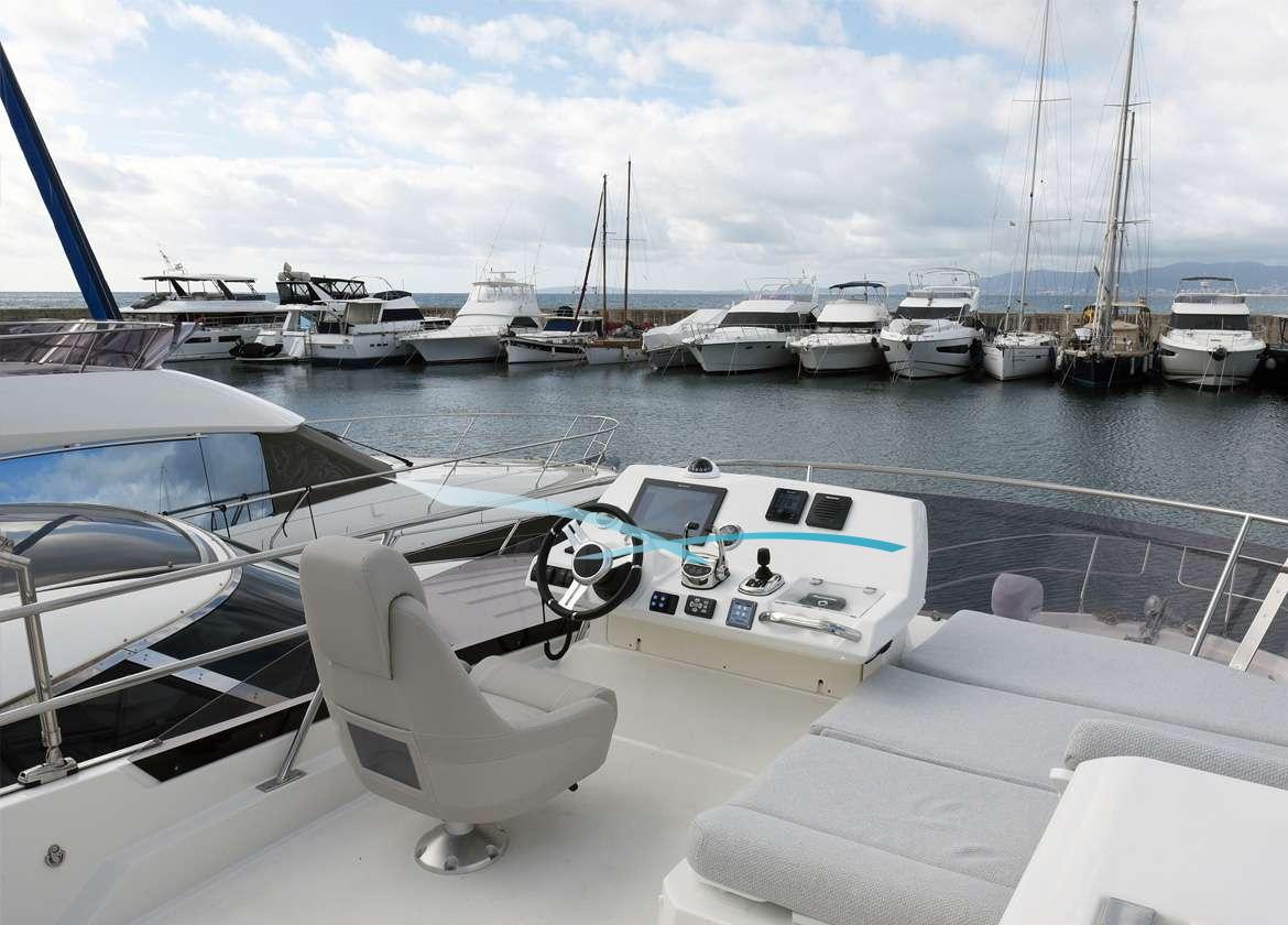 Der V-Drive Antrieb mit Joystick und Bugstrahlruder ermöglicht ein einfaches und sicheres Manövrieren der Yacht.