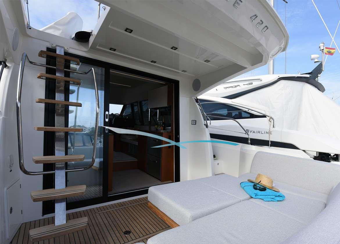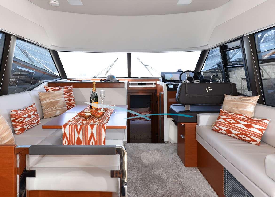 Die Prestige 420 bietet eine umfassende Ausstattung für entspannte Tage auf See. Die große Flybridge, die größte für ein Schiff dieser Klasse, ermöglicht ein unvergleichliches Yachterlebnis im Freien.