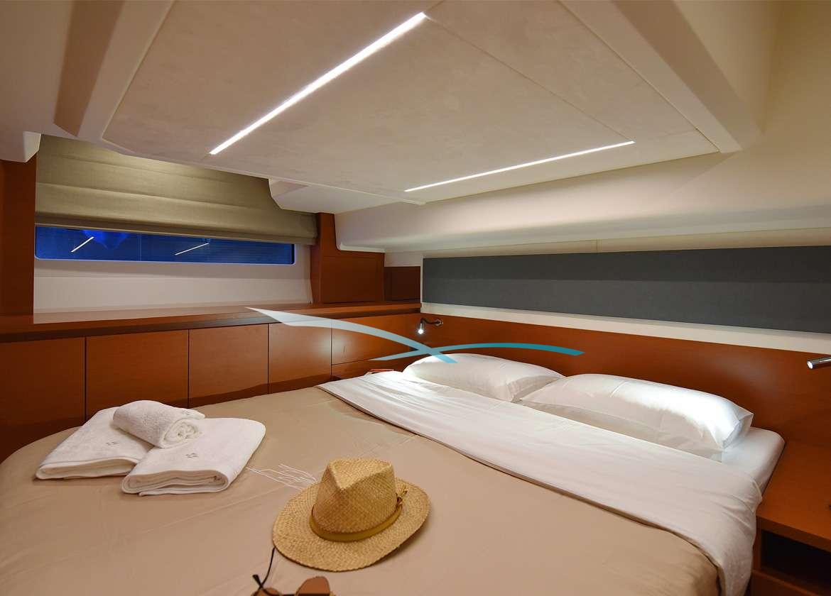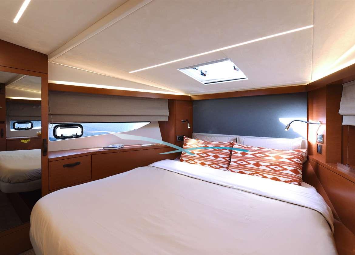 Die große Eignerkabine liegt mittschiffs, nutzt die gesamte Breite der Yacht und ist der ruhigste Ort an Bord. Die Gäste werden aber auch von der ebenso geräumigen VIP-Kabine im Vorschiff begeistert sein.