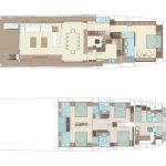 Mit einer Länge von 33,50 Metern bietet “FIGURATI” Platz für bis zu zehn Gäste und eine sechsköpfige Crew. Die Eignersuite auf dem Hauptdeck verfügt über ein Kingsize-Bett, einen begehbaren Kleiderschrank und ein marmorverkleidetes Bad. Sie kann leicht in ein privates Büro umgewandelt werden. Auf dem Unterdeck befinden sich vier geräumige Kabinen, darunter zwei VIP-Suiten, eine Doppel-Gästekabine und eine flexible Familiensuite, die als Doppelbett oder zwei Einzelbetten mit einem zusätzlichen Pullman-Bett konfiguriert werden kann. Jede Kabine ist mit einem Unterhaltungssystem ausgestattet.