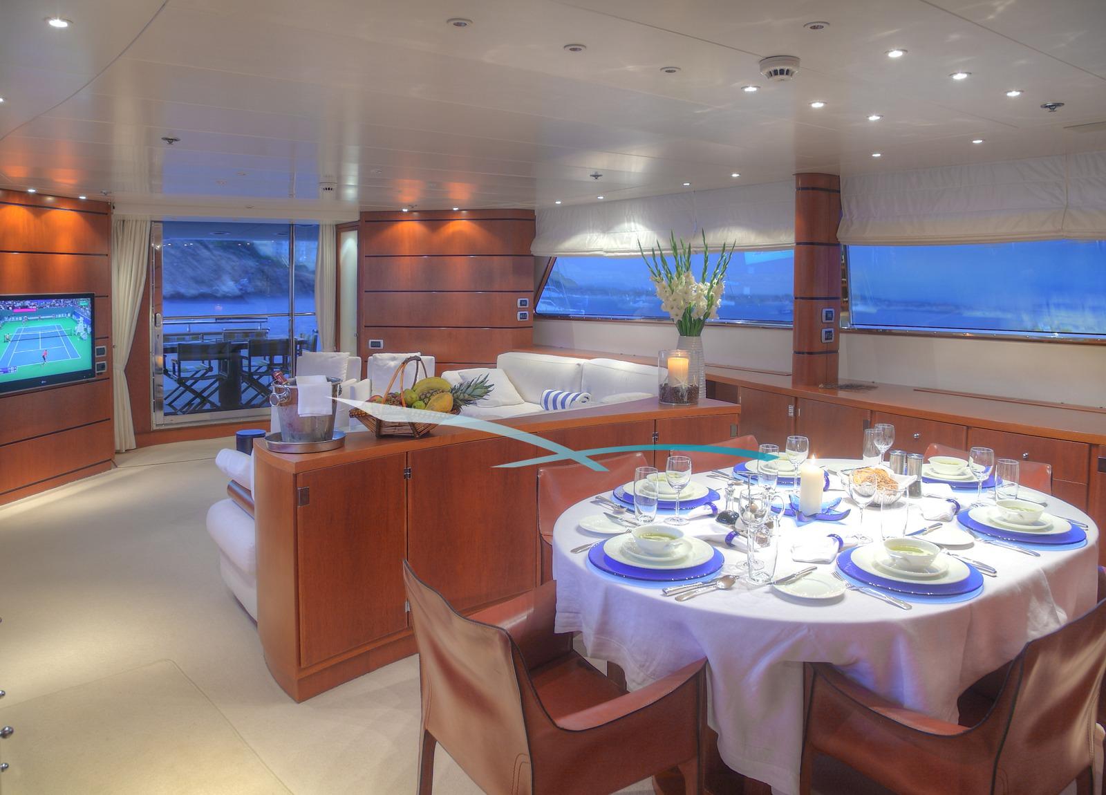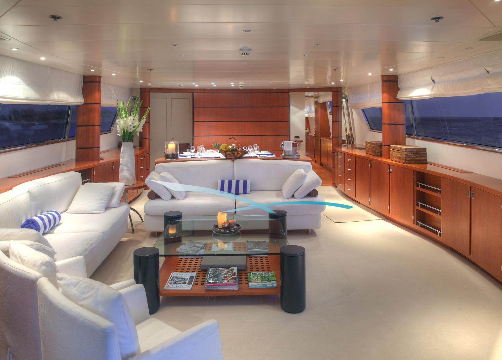 Eleganz trifft Komfort an Bord der stilvollen Motoryacht „Carom“.