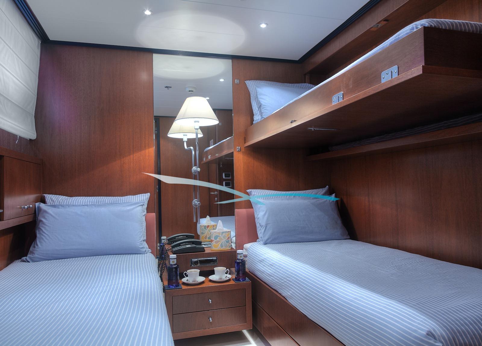 An Bord erwarten Sie vier großzügige Gästekabinen – jede mit eigenem Bad – die bis zu zehn Übernachtungsgästen höchsten Komfort bieten. Die warme, zeitlose Innenarchitektur schafft eine exklusive Wohlfühlatmosphäre, die zum Verweilen einlädt.