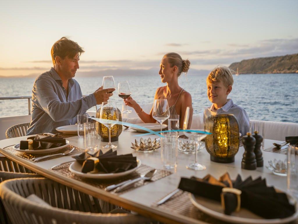 For a change of pace, an extensive selection of water sports equipment is available. In addition to a Williams Jet Tender 435 and a Chase Boat, these include a Seadoo Spark, a Waverunner, paddleboards, water skis, a wakeboard, snorkeling equipment, and other water toys – perfect for adventures in hidden coves and unforgettable hours on the water.