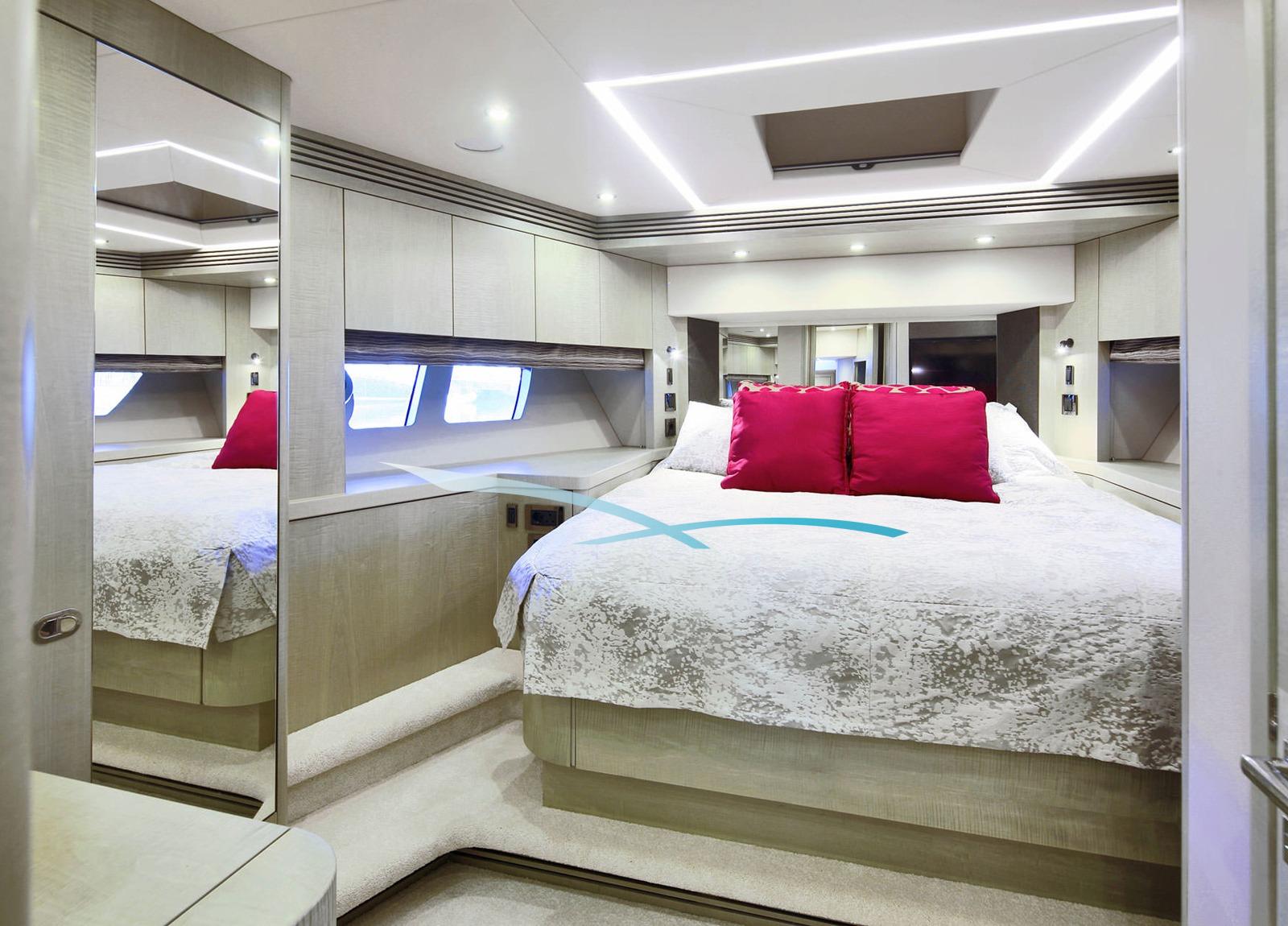An Bord finden sechs Gäste bequem in vier komfortablen Kabinen Platz: einer eleganten Master-Suite, einer VIP-Doppelkabine sowie zwei stilvollen Twin-Kabinen – jede mit eigenem Bad. Bis zu 12 Gäste können tagsüber an Bord die Weite des Mittelmeers in vollen Zügen genießen.