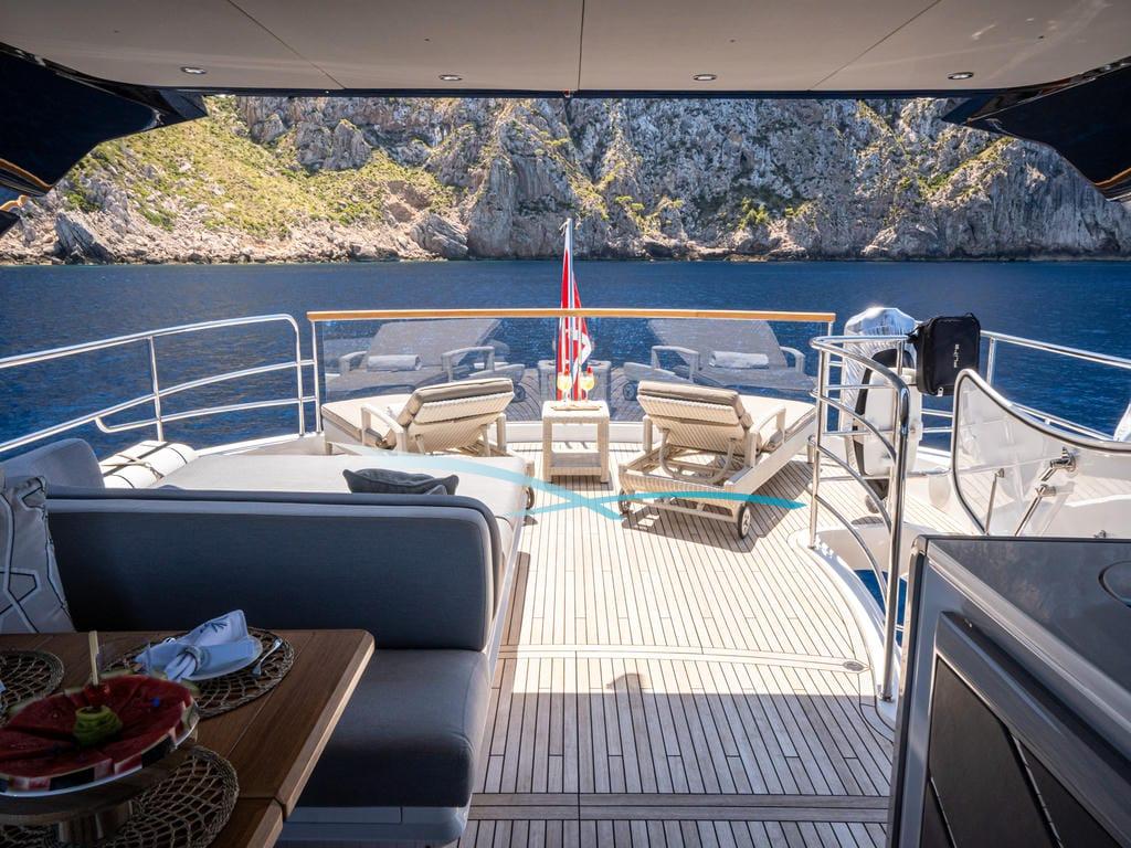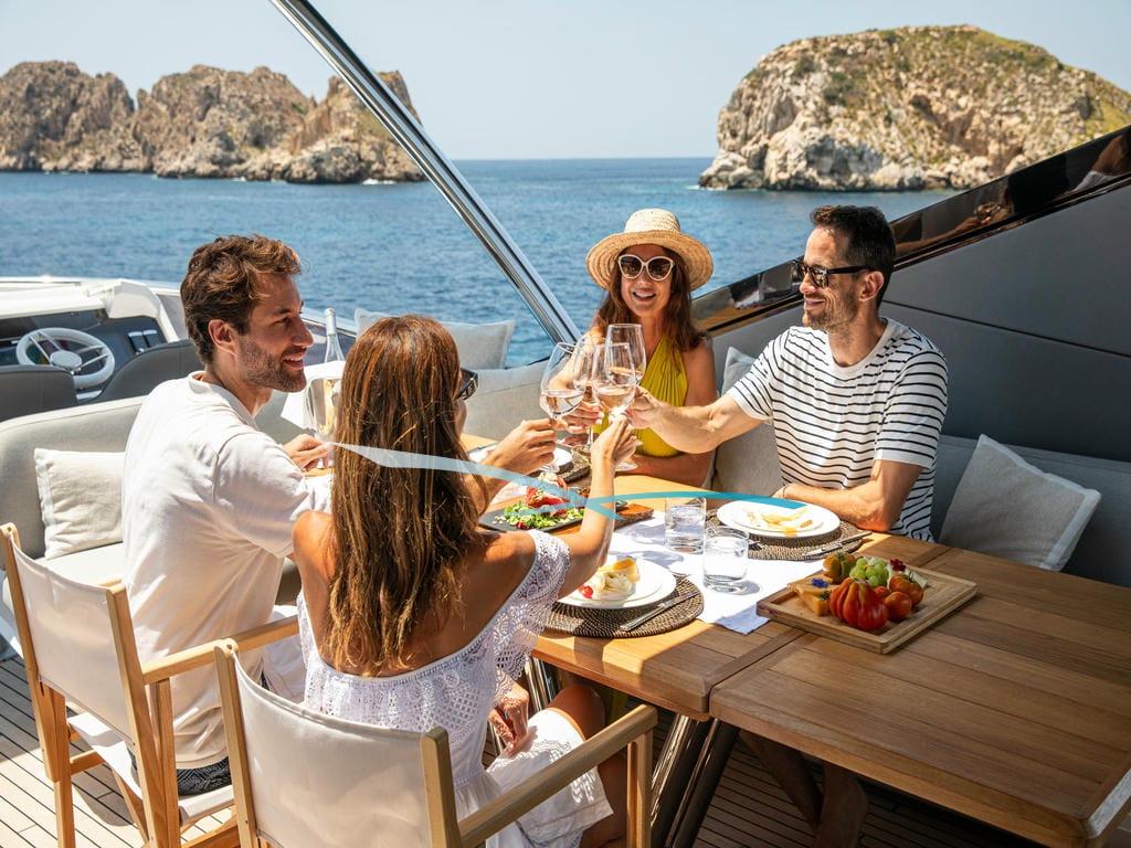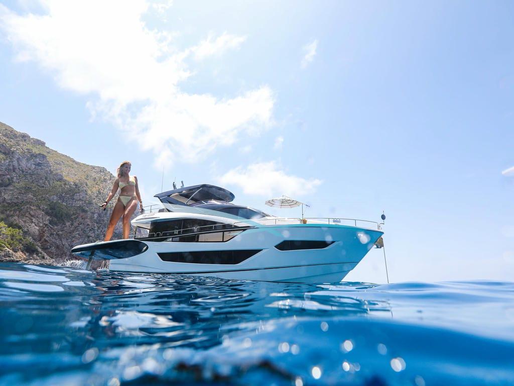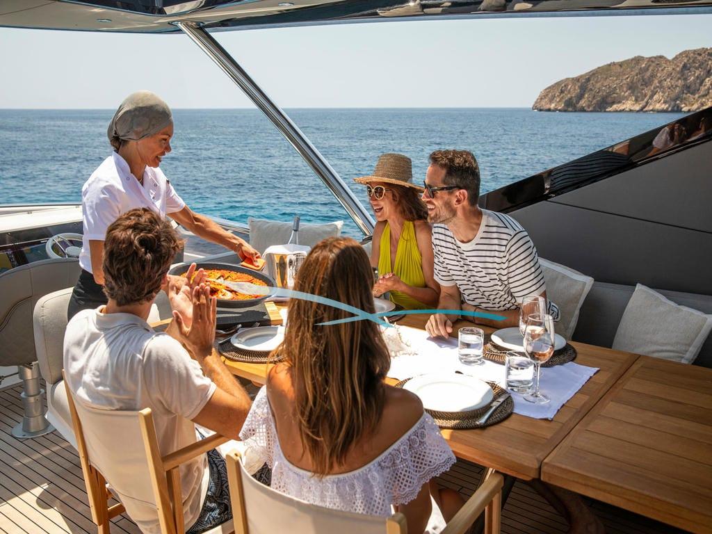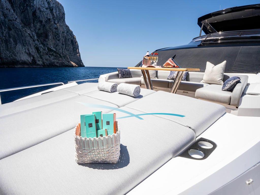 Erleben Sie entspannte Stunden an Deck oder auf dem Wasser – die „Moonlight“ ist die perfekte Wahl für luxuriösen Yachtcharter auf den Balearen.