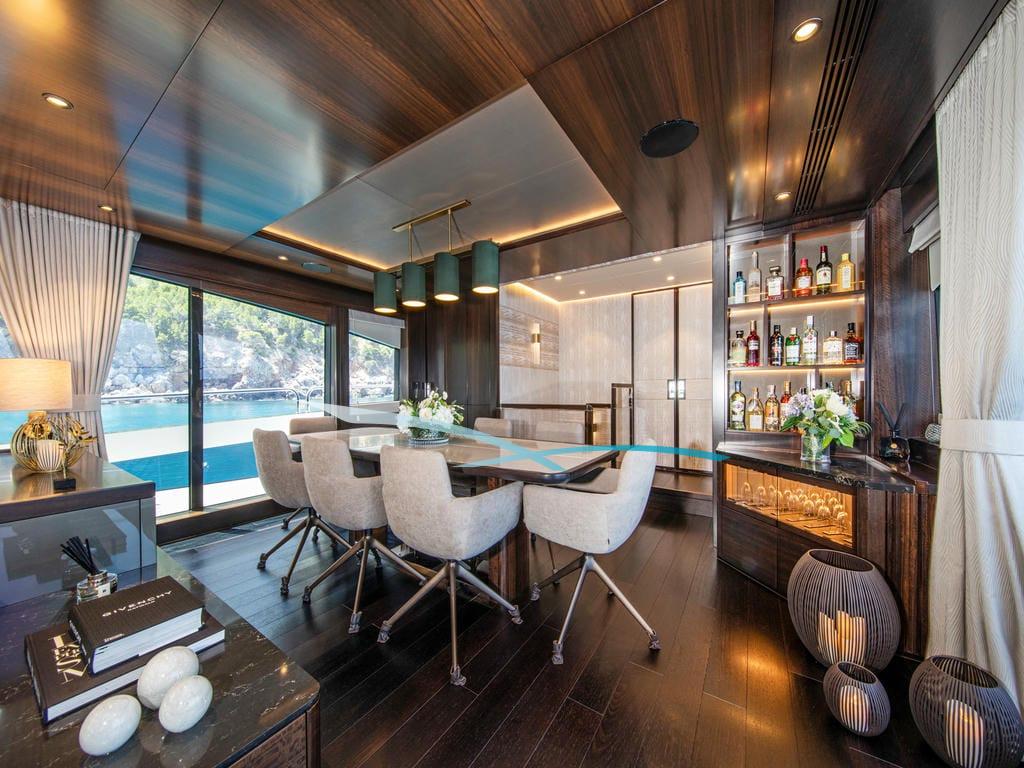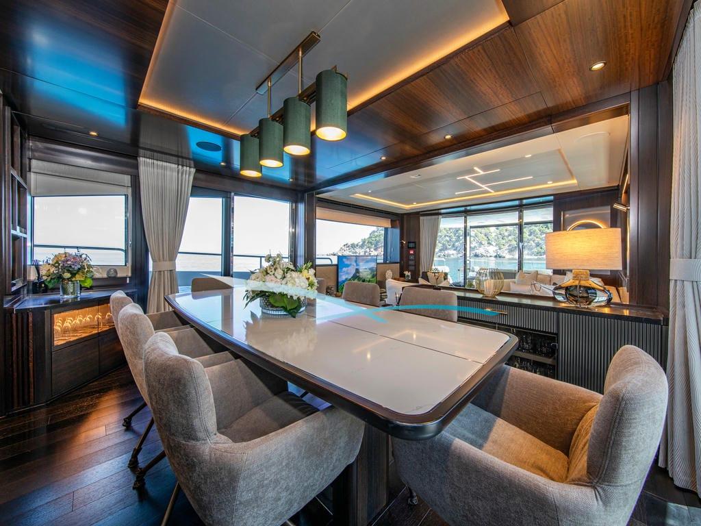 Der Innenraum besticht durch ein elegantes und stilvolles Design, eine elegante Atmosphäre und eine komfortable Innenausstattung. Großzügige Wohnbereiche, lichtdurchflutete Räume und eine hochwertige Ausstattung machen jeden Moment zu einem besonderen Erlebnis.