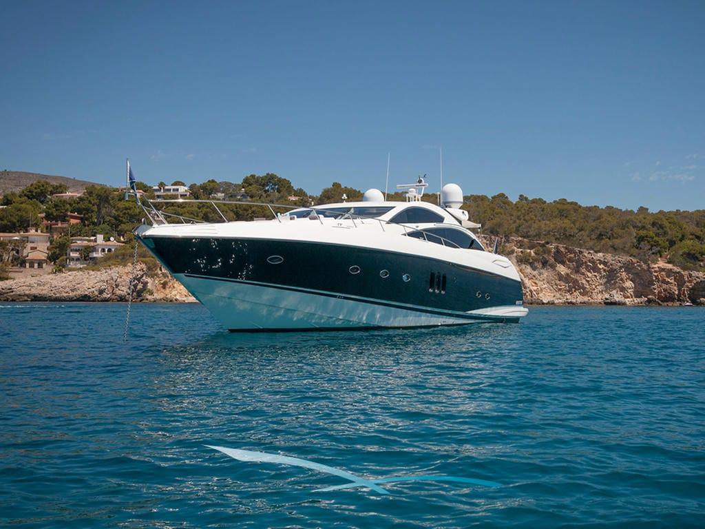 Discover the beauty of the Balearic Islands on board the stylish motor yacht "Froggy" - a Sunseeker Predator 82.