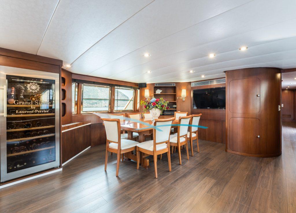 Die klassische Luxusyacht bietet Platz für bis 12 Gäste in 5 Kabinen mit eigenem Bad . Dazu zählen eine elegante Master-Suite, eine VIP-Kabine, eine Doppelkabine sowie zwei Twin-Kabinen – perfekt für Familien oder Gruppen, die Yacht auf den Balearen mieten .