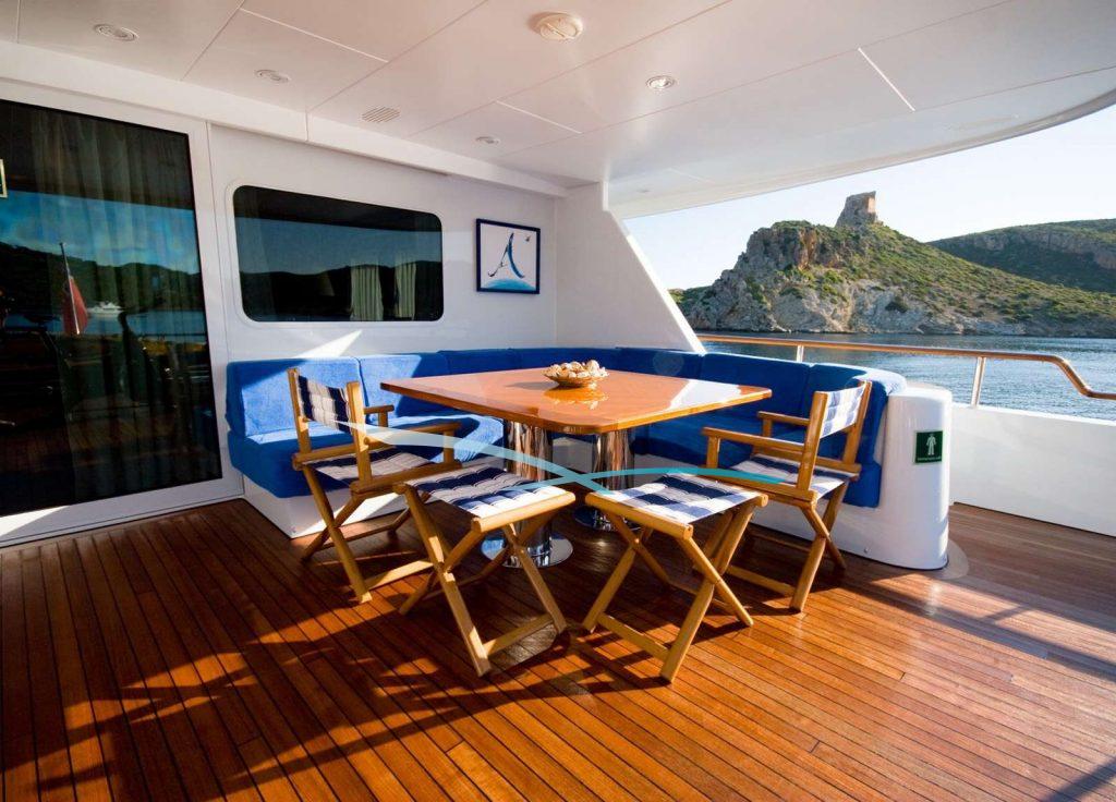 Die Yacht erstreckt sich über drei großzügige Decks und bietet alles, was Sie für einen unvergesslichen Aufenthalt auf See benötigen. Fünf klimatisierte Kabinen mit en-suite Badezimmern bieten Platz für bis zu 12 Gäste, darunter eine Master-Suite und weitere elegant ausgestattete Gästekabinen – ideal für Familien oder Freundesgruppen.