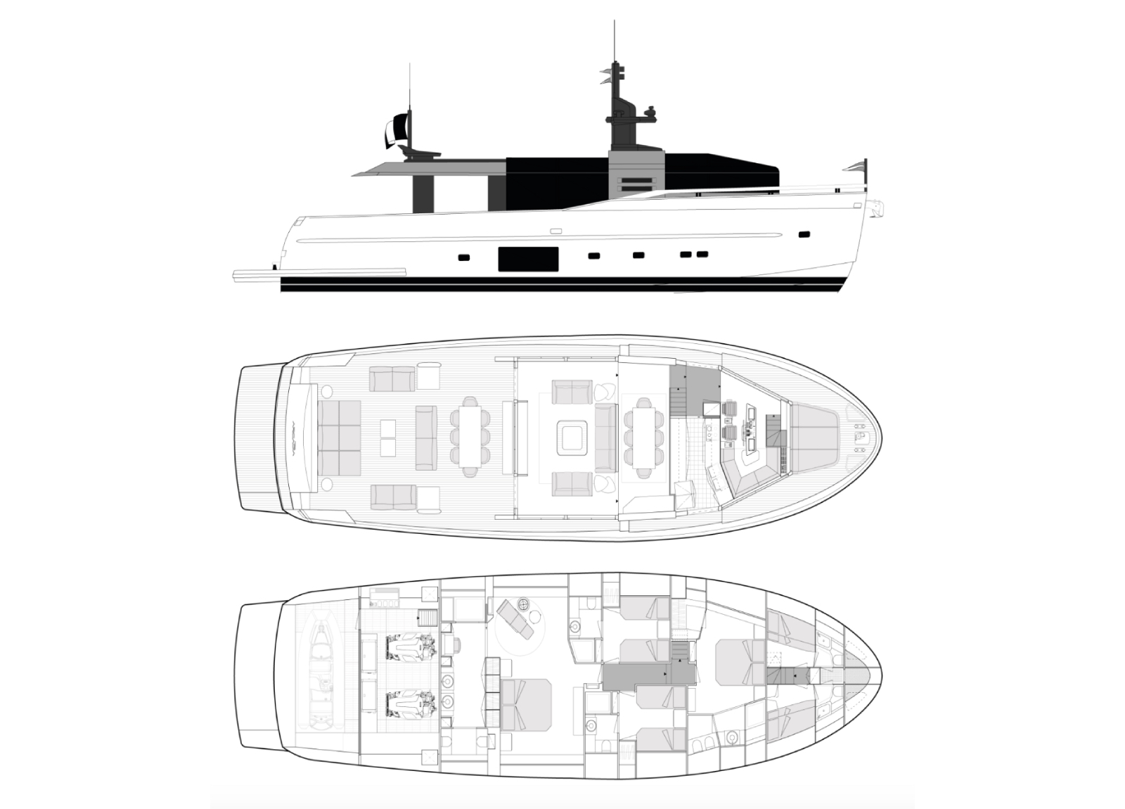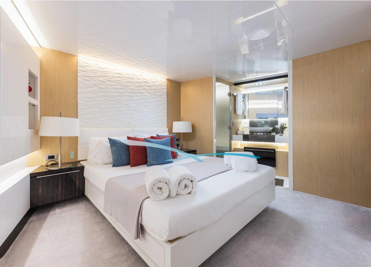 Die 85-Fuß-Yacht bietet Platz für bis zu acht Gäste in vier eleganten Kabinen, darunter eine großzügige Master-Suite, eine VIP-Kabine sowie zwei Twin-Kabinen mit eigenem Bad.