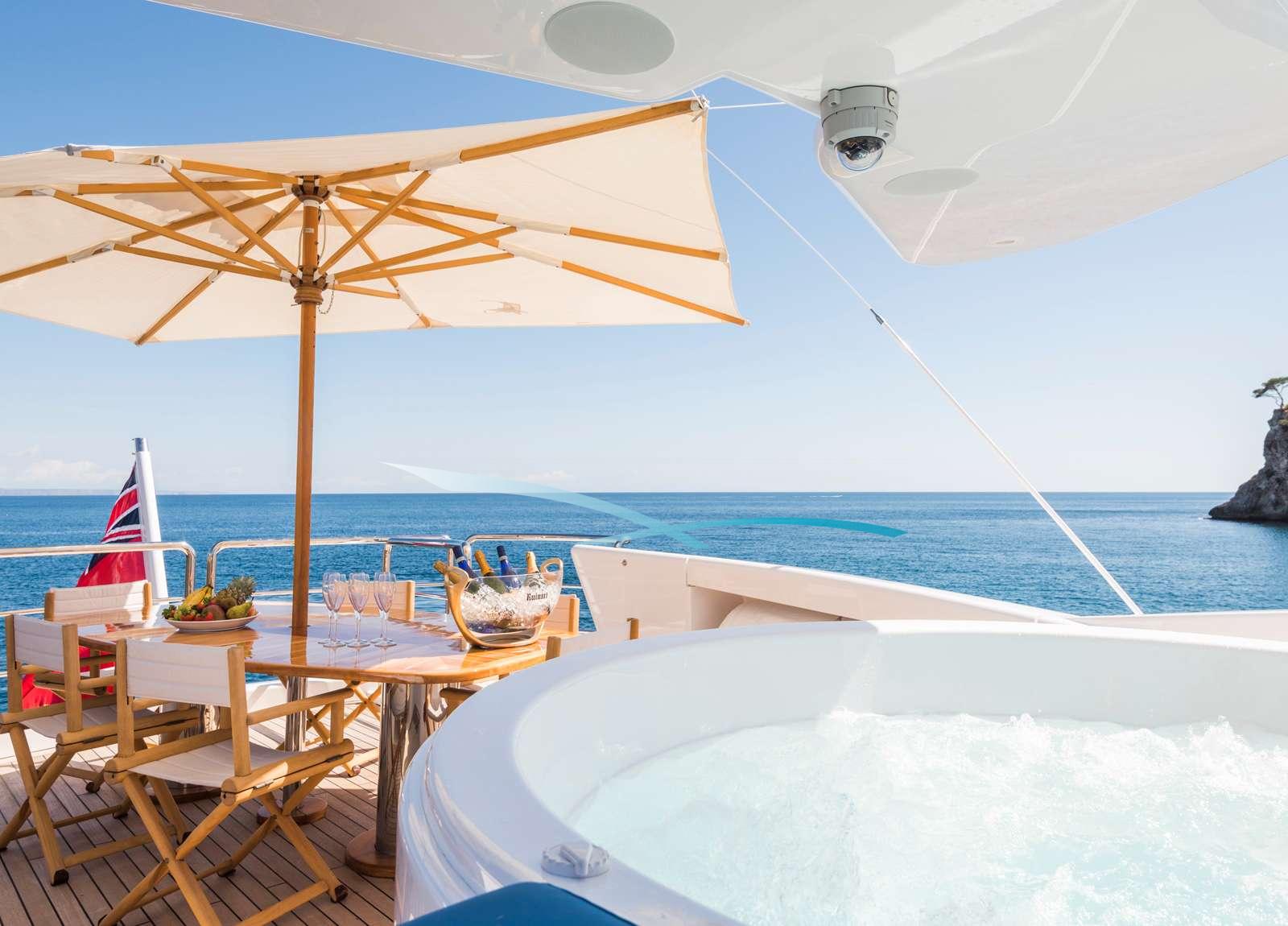 An Deck bietet die Benita Blue reichlich Gelegenheit zur Erholung: Ein Jacuzzi mit Panoramablick lädt zum Relaxen ein, begleitet von kühlen Drinks und mediterranem Flair. Kulinarisch verwöhnt der Bordkoch die Gäste mit raffiniert zubereiteten Menüs, die keine Wünsche offenlassen.