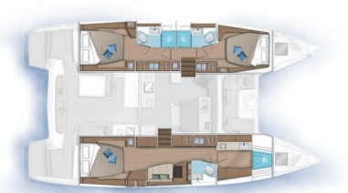 Der Katamaran Lagoon 46 ist ein geräumiger und moderner Segelkatamaran, ideal für Ihren Charter auf Mallorca. Er bietet mit seinen großzügigen Abmessungen und cleverem Design ausreichend Platz und Komfort für Familien oder Gruppen bis zu 10 Personen. Die Lagoon 46 verfügt über 4 Doppelkabinen mit eigenen Bädern und ein lichtdurchflutetes, offenes Salon-Layout, das fließend in die Außenbereiche übergeht. Auf dem vorderen und hinteren Deck sowie auf dem Flybridge-Bereich laden bequeme Sitz- und Liegeflächen zum Entspannen und Sonnenbaden ein.