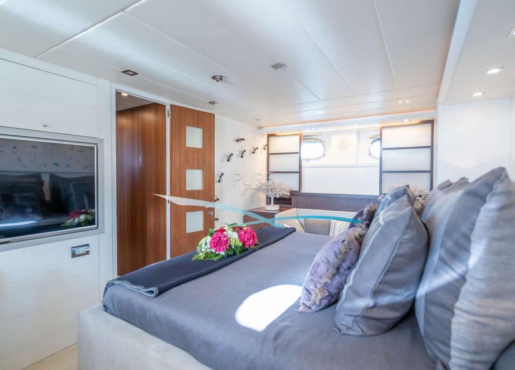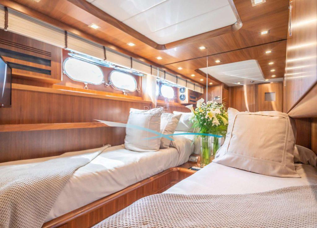 An Bord finden bis zu 10 Übernachtungsgäste bequem Platz. Die Yacht verfügt über vier elegante Doppelkabinen, darunter zwei großzügige Junior-Suiten und zwei weitere Kabinen mit zusätzlichen Pullman-Betten – ideal für Familien oder Gruppen. Jede Kabine ist mit eigenem Bad (en-suite) und Satelliten-TV ausgestattet, sodass Privatsphäre und Unterhaltung jederzeit gewährleistet sind.