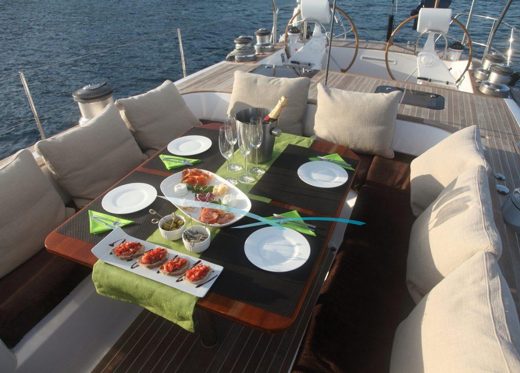 Sie bietet Platz für sechs Gäste in drei klimatisierten Kabinen. Die Hauptkabine verfügt über ein großes Doppelbett und ein eigenes Badezimmer, während die Backbord-Kabine über ein Doppelbett und die Steuerbord-Kabine über eine obere und untere Kojen verfügt. Letztere Kabinen teilen sich ein angrenzendes Badezimmer mit einer großen separaten Dusche.