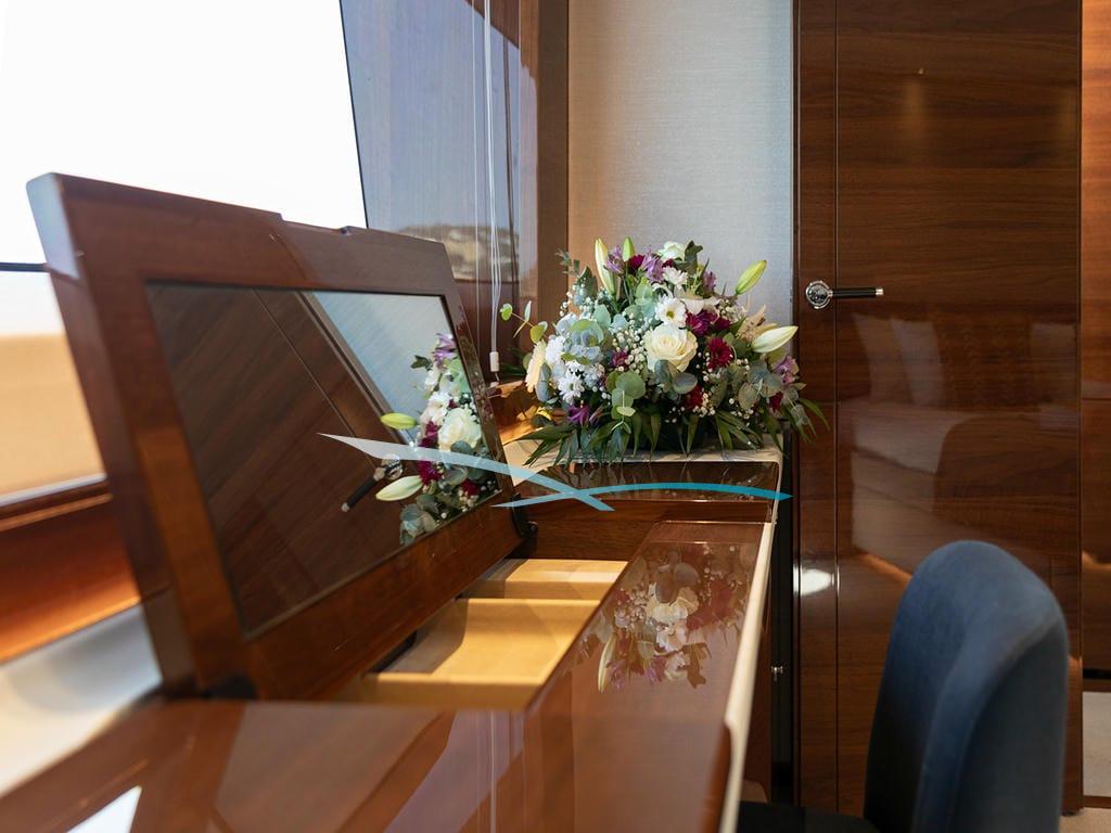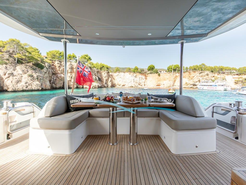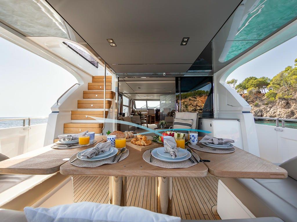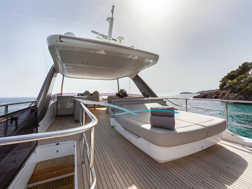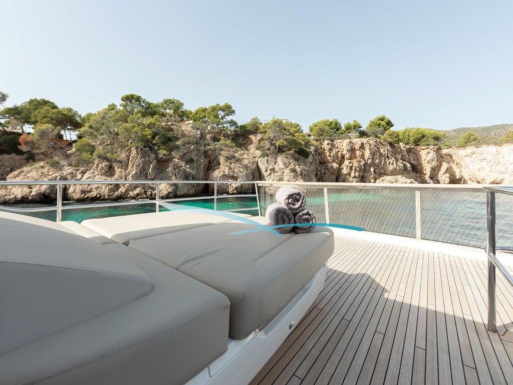 Großzügige Sonnendecks, eine einladende Flybridge und elegante Lounges schaffen den perfekten Rahmen für entspannte Stunden, gesellige Abende und unvergessliche Momente am Wasser. Mit Wassersport-Equipment und Tender steht auch dem Abenteuer in versteckten Buchten nichts im Weg.