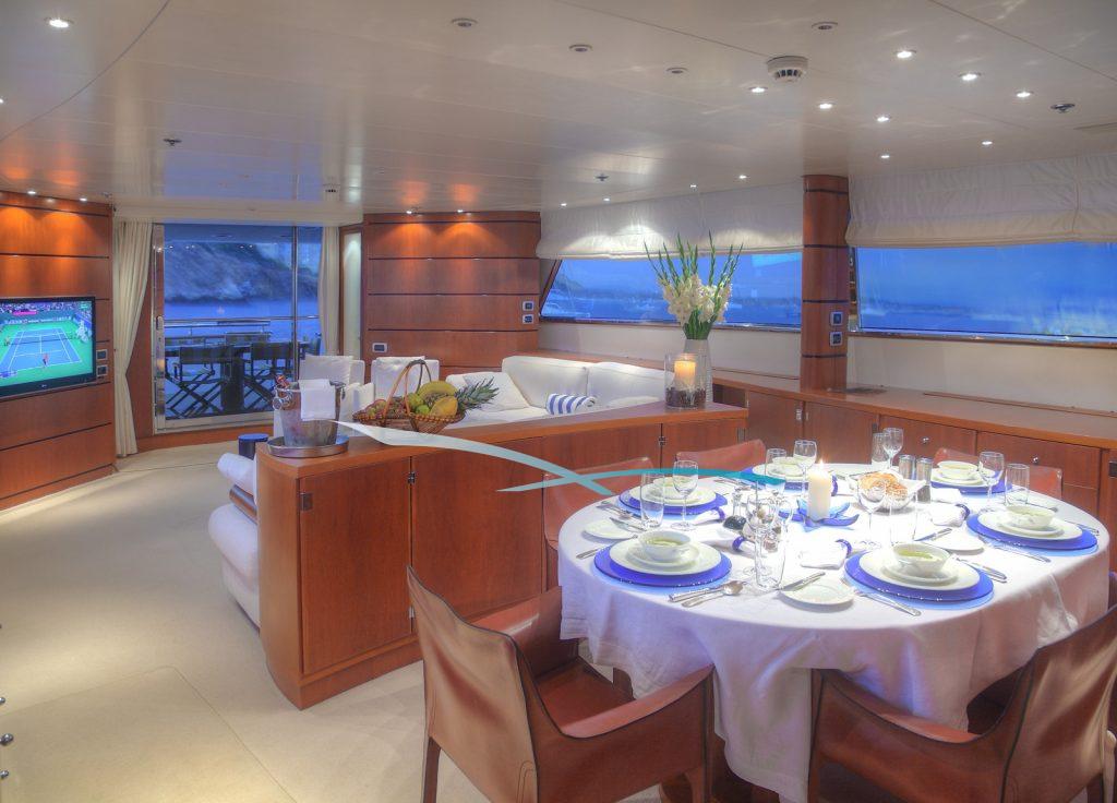 Eleganz trifft Komfort an Bord der stilvollen Motoryacht „Carom“.