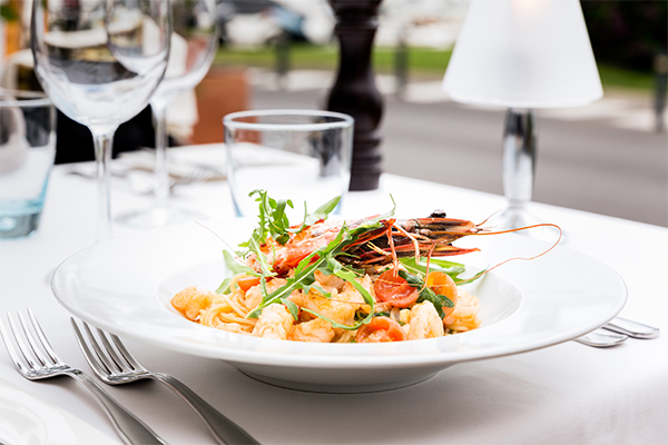 Spitzenkoch Sven Grabolle verwöhnt seine Gäste im Restaurant Ritzi mit exklusiven italienischen Gerichten. Hier speisen Sie im Sommer unter freiem Himmel mit Blick auf den Ozean.