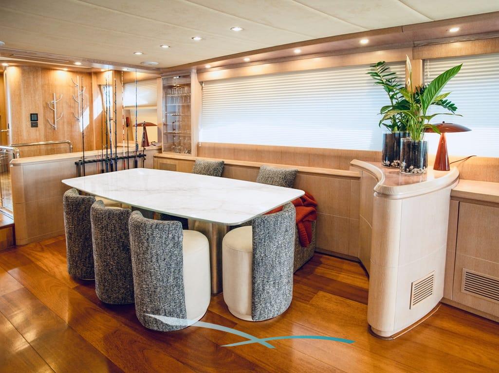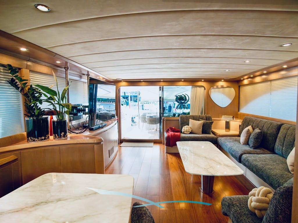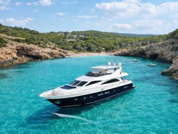 Die Astondoa “4T´S” wurde 2002 gebaut und 2026 renoviert und liegt in San Antonio auf Ibiza und vereint auf 26 Metern klassische Eleganz mit modernem Luxus. Mit großzügigen Außenbereichen, stilvollem Interieur und 26,5 Knoten Höchstgeschwindigkeit ist sie ideal für exklusive Chartertage rund um Ibiza.