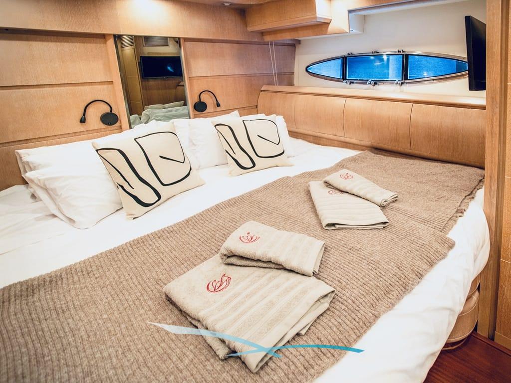 Bis zu 12 Gäste finden in 5 Kabinen – Master, 2 VIPs und 2 Doppelkabinen mit Pullman-Bett – höchsten Komfort mit jeweils eigenem Bad.