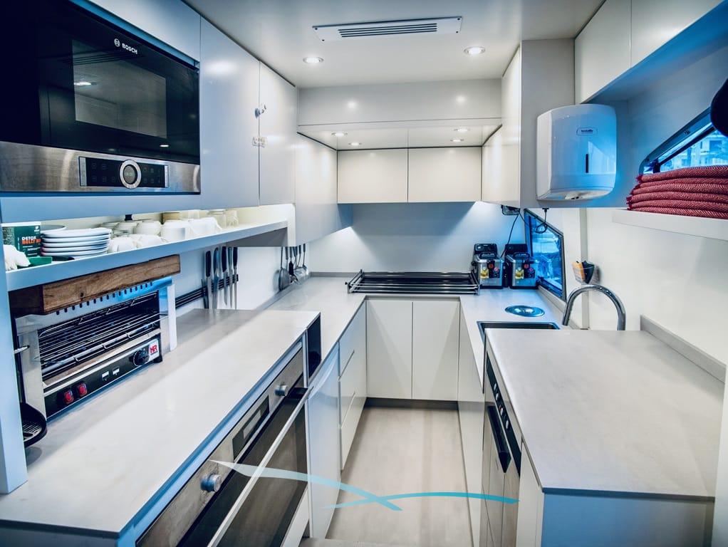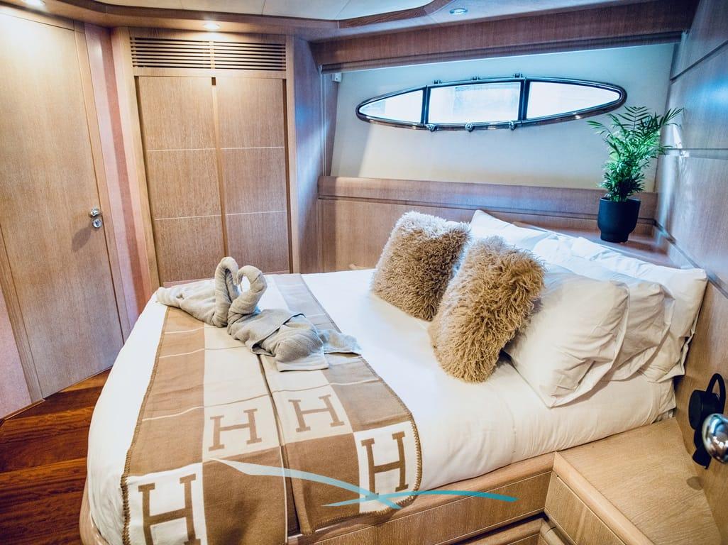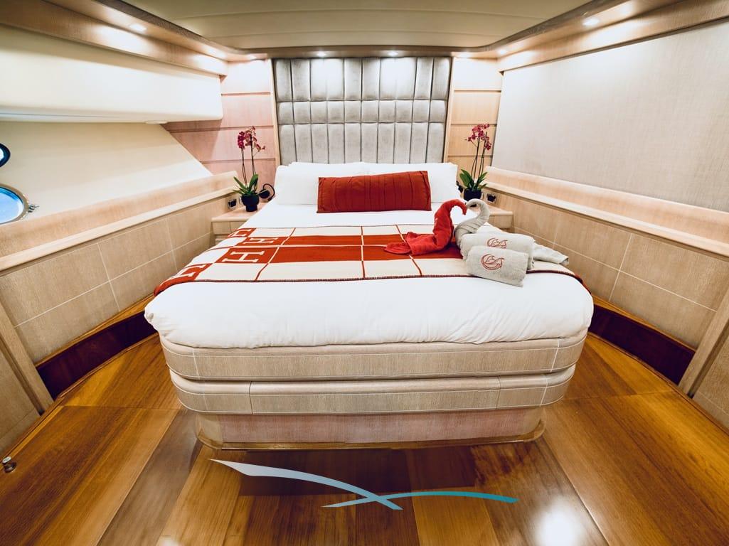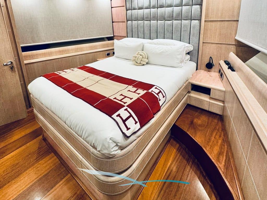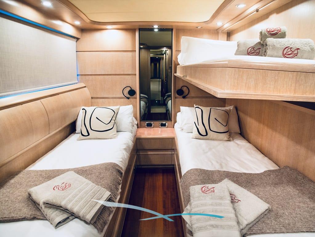 Bis zu 12 Gäste finden in 5 Kabinen – Master, 2 VIPs und 2 Doppelkabinen mit Pullman-Bett – höchsten Komfort mit jeweils eigenem Bad.