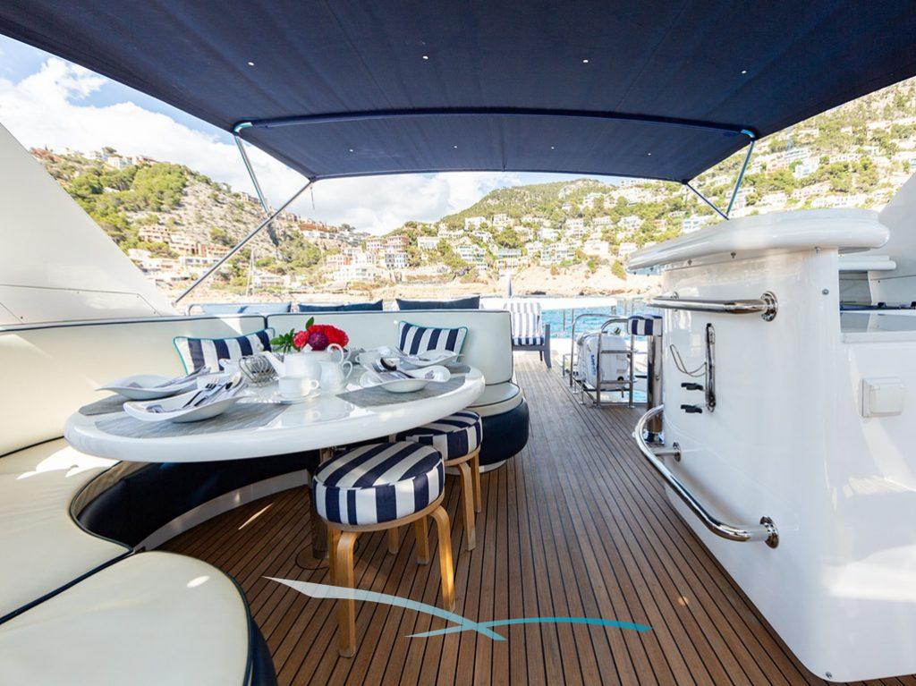 Die in Port d’Andratx gelegene Elegance 78 „Ehthele“ ist seit der Saison 2022 neu auf dem Chartermarkt. Die geräumige Motoryacht, Baujahr 2004, befindet sich in einem sehr guten Zustand und verfügt über eine erfahrene Crew, die sich hervorragend um die Chartergäste kümmert, während die Yacht zu den wunderschönen Flecken der Balearen gleitet.