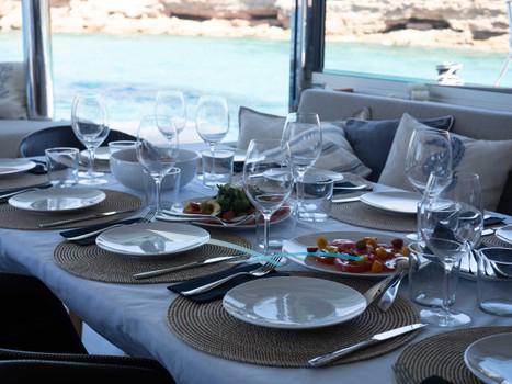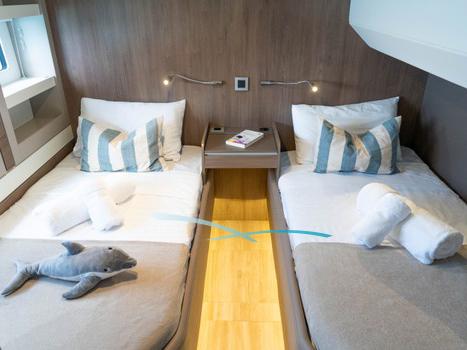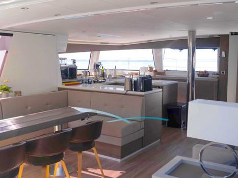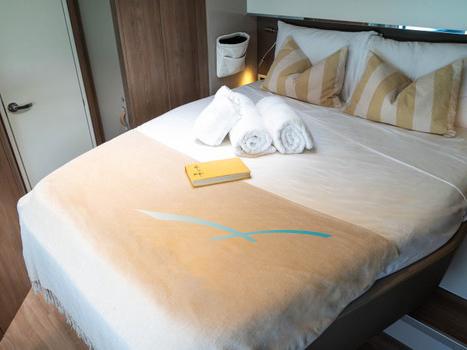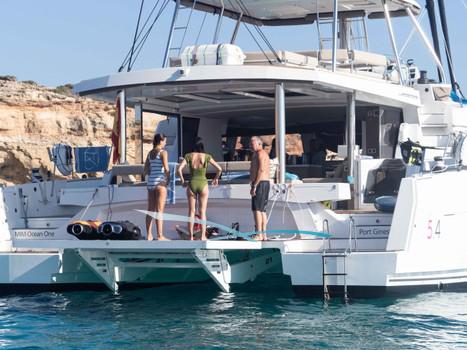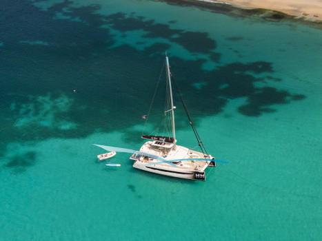 Der Bali 5.4 ist ein eleganter Charter-Katamaran mit Crew, perfekt für eine luxuriöse Erkundung der Balearen. Mit einer Länge von 16,80 Metern besticht er durch großzügige Innen- und Außenbereiche, darunter ein offener Wohnbereich mit Panoramafenstern und eine eindrucksvolle Flybridge mit Liegeflächen und Lounge-Ecke. Der Katamaran bietet Platz für bis zu 10+1 Gäste in komfortablen Kabinen, oft mit eigenem Bad, und eignet sich ideal für Familien oder Gruppen. Dank der professionellen Crew (3) können die Gäste vollends entspannen und das kristallklare Wasser und die spektakuläre Küste der Balearen in vollen Zügen genießen.