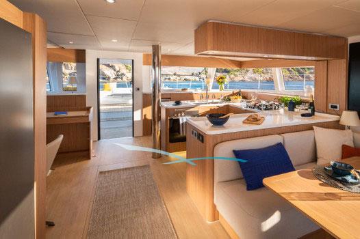 Der Bali 5.8 ist ein luxuriöser Charter-Katamaran, ideal für exklusive Segelreisen auf den Balearen mit professioneller Crew. Mit 17,55 Metern Länge bietet er beeindruckend viel Platz und Komfort für bis zu 10 Gäste. Sein innovatives Design umfasst einen großzügigen Salon mit Panoramafenstern, eine komplett offene Heckterrasse sowie ein geräumiges Flybridge-Deck zum Entspannen und Sonnenbaden. Die privaten Kabinen, meist mit eigenem Bad, bieten erstklassigen Komfort. Dank der erfahrenen Crew (Captain, Stewardess und Koch) an Bord können sich die Gäste voll und ganz auf die spektakulären Landschaften und das kristallklare Wasser der balearischen Inseln konzentrieren und sich verwöhnen lassen