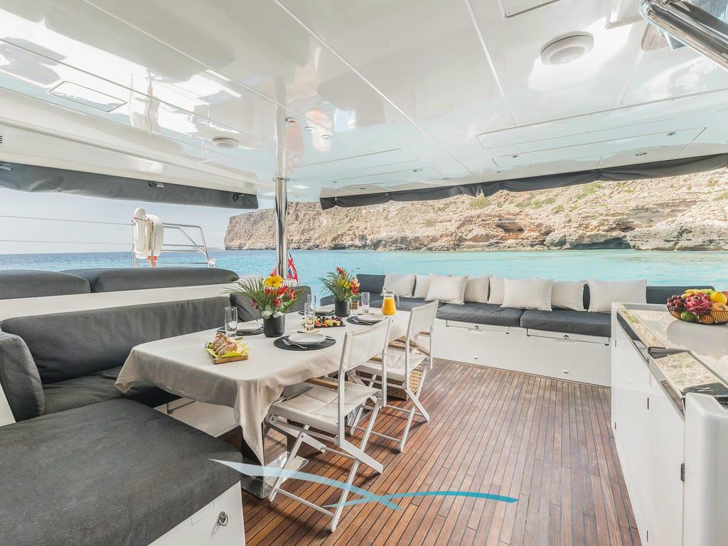 Willkommen an Bord der Lagoon „Lady Fiona“ – einem luxuriöserem 18,90 Meter langer Katamaran, der seit 2017 stilvolle Erlebnisse auf den Balearen ermöglicht. Mit Platz für bis zu 6 Gäste und einer aufmerksamen Crew von zwei Personen genießen Sie an Bord entspannten Komfort und persönliche Betreuung.