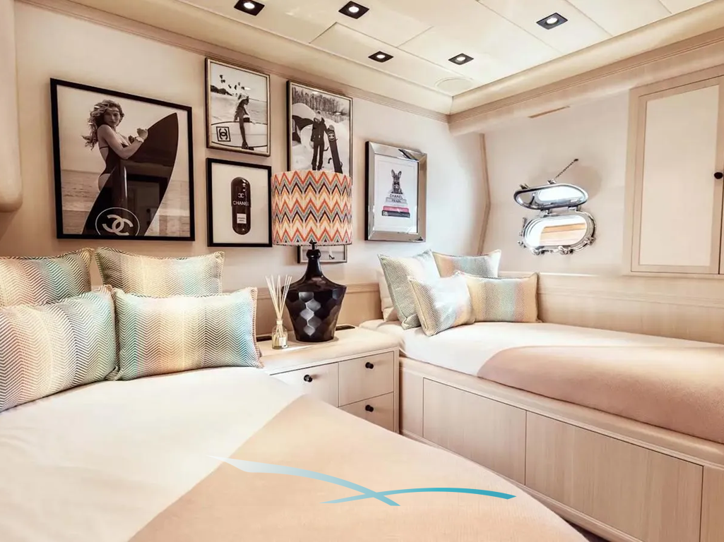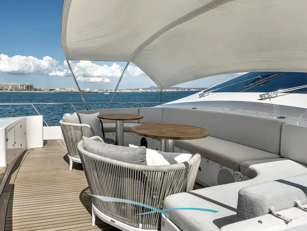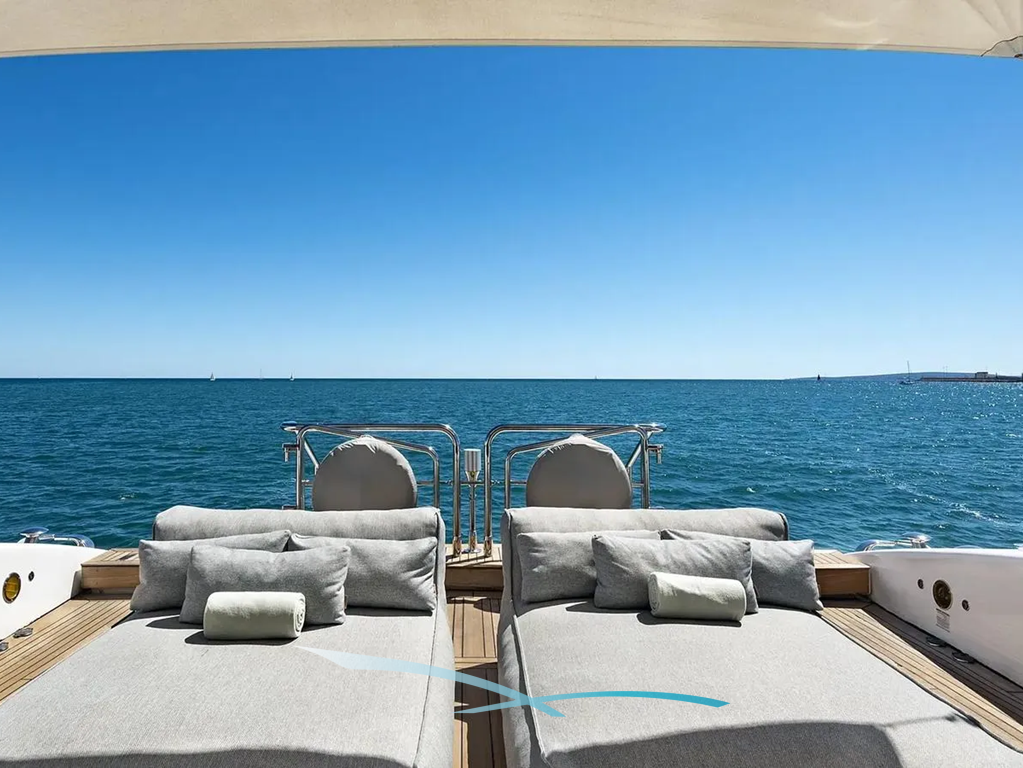 Das offene, elegante Layout der „Mrs Grey“ lädt zu geselligen Stunden mit Familie oder Freunden ein – ob beim Sonnenbaden auf den weitläufigen Decks, bei einem Aperitif im Lounge-Bereich oder bei einem Dinner unter freiem Himmel. Der großzügige Außenbereich macht diese Yacht zum idealen Ort für stilvolles Beisammensein und entspannte Momente am Wasser.