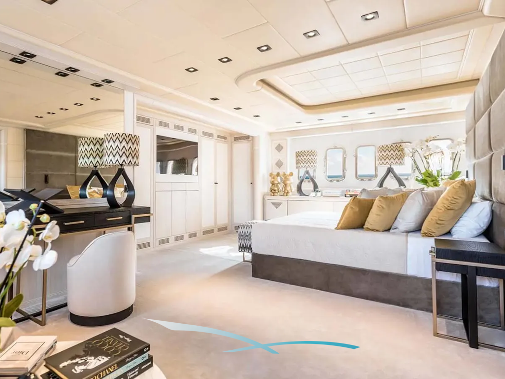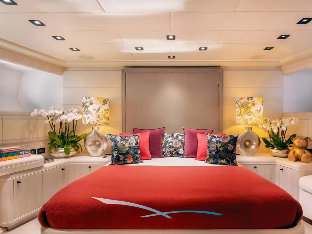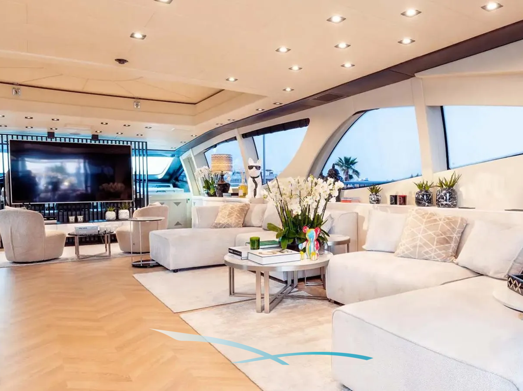 Das offene, elegante Layout der „Mrs Grey“ lädt zu geselligen Stunden mit Familie oder Freunden ein – ob beim Sonnenbaden auf den weitläufigen Decks, bei einem Aperitif im Lounge-Bereich oder bei einem Dinner unter freiem Himmel. Der großzügige Außenbereich macht diese Yacht zum idealen Ort für stilvolles Beisammensein und entspannte Momente am Wasser.