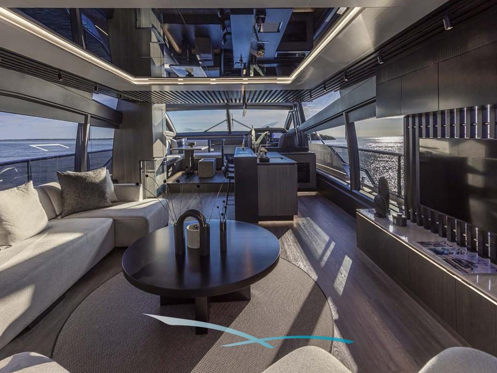 Sie verfügt über vier großzügige en-suite Kabinen, weitläufige Innen- und Außenbereiche sowie einen stilvollen, offenen Grundriss mit warmer, moderner Atmosphäre. Auf dem Deck lädt der Bugbereich mit verstellbaren Sonnenliegen, Sitzgelegenheiten und Essbereich zum entspannten Verweilen unter der mediterranen Sonne ein.