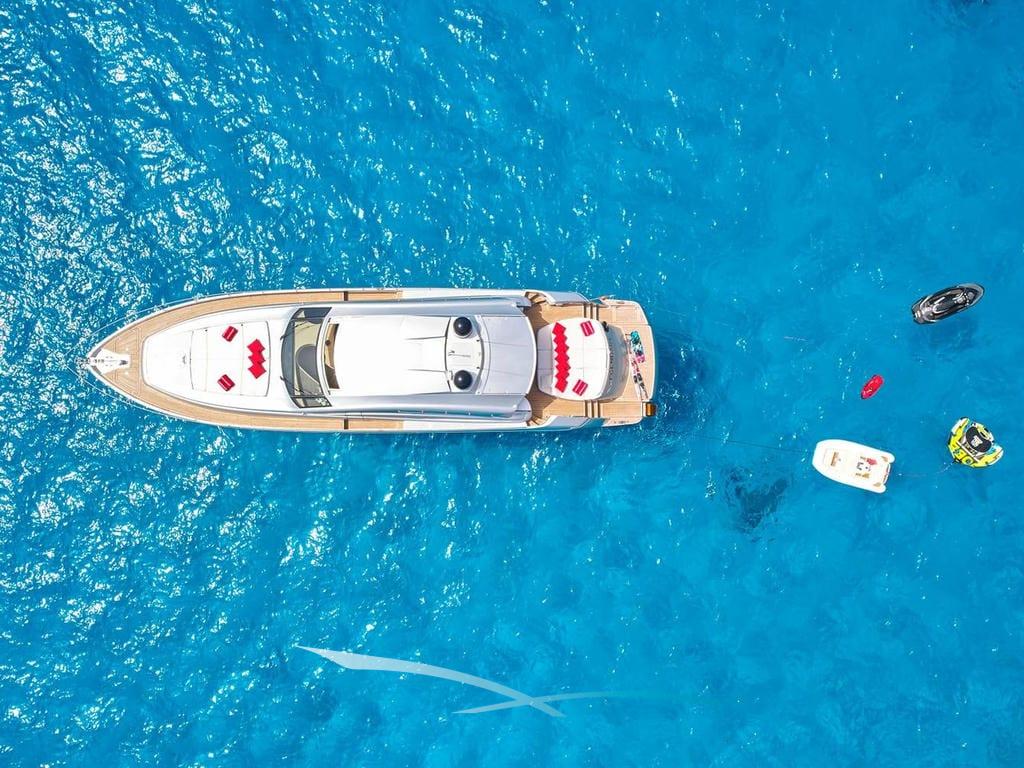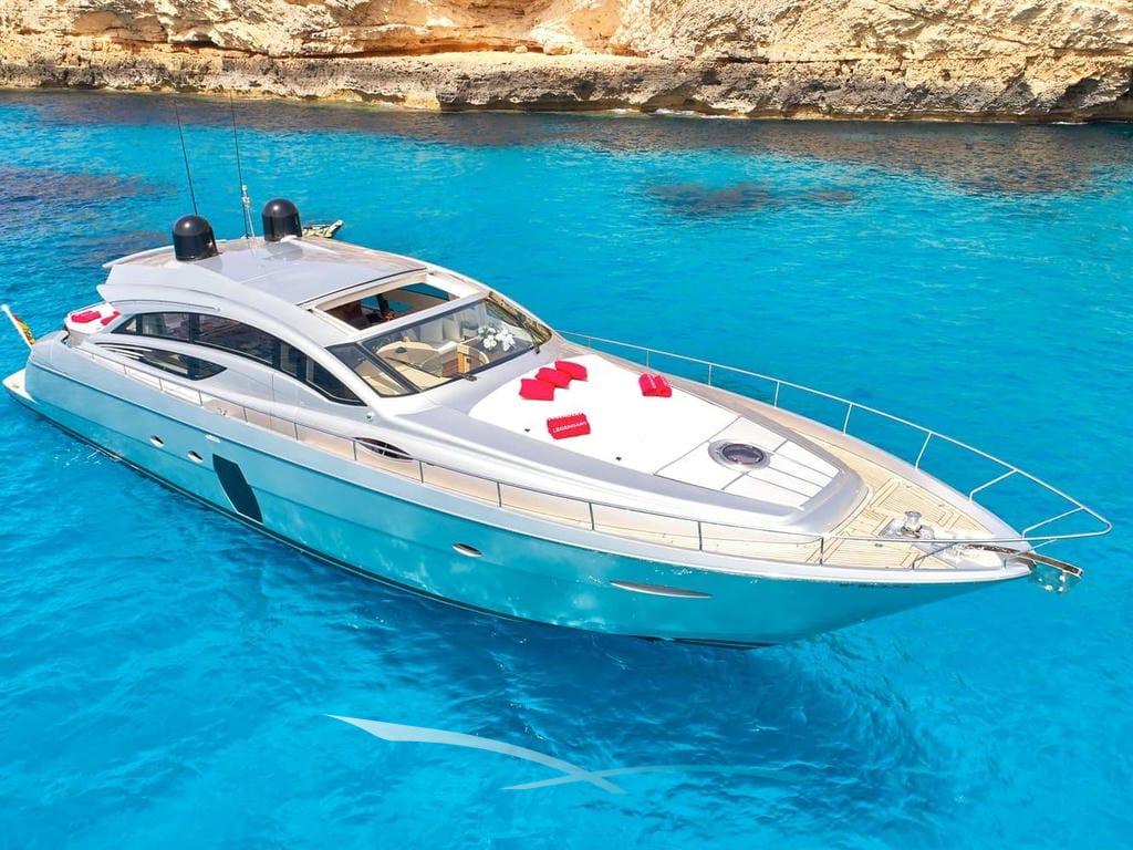 Die elegante Pershing 72 „Legendary“ steht für erstklassige Performance und sportliches Design – eine Luxusyacht der Extraklasse, ideal für anspruchsvolle Gäste, die Geschwindigkeit und Komfort auf dem Wasser vereinen möchten. Gebaut mit typisch italienischem Stilbewusstsein, ist sie die perfekte Wahl für eine exklusive Yachtcharter auf den Balearen.
