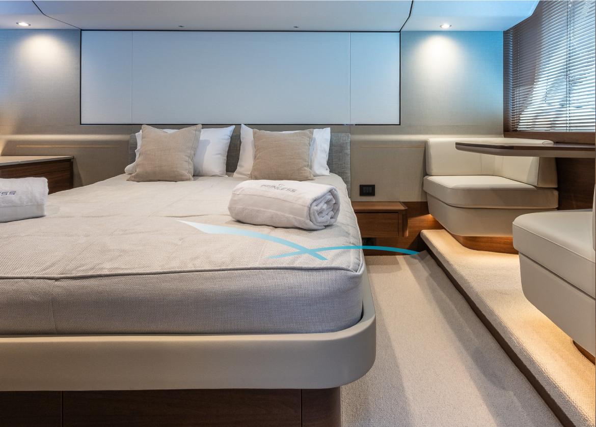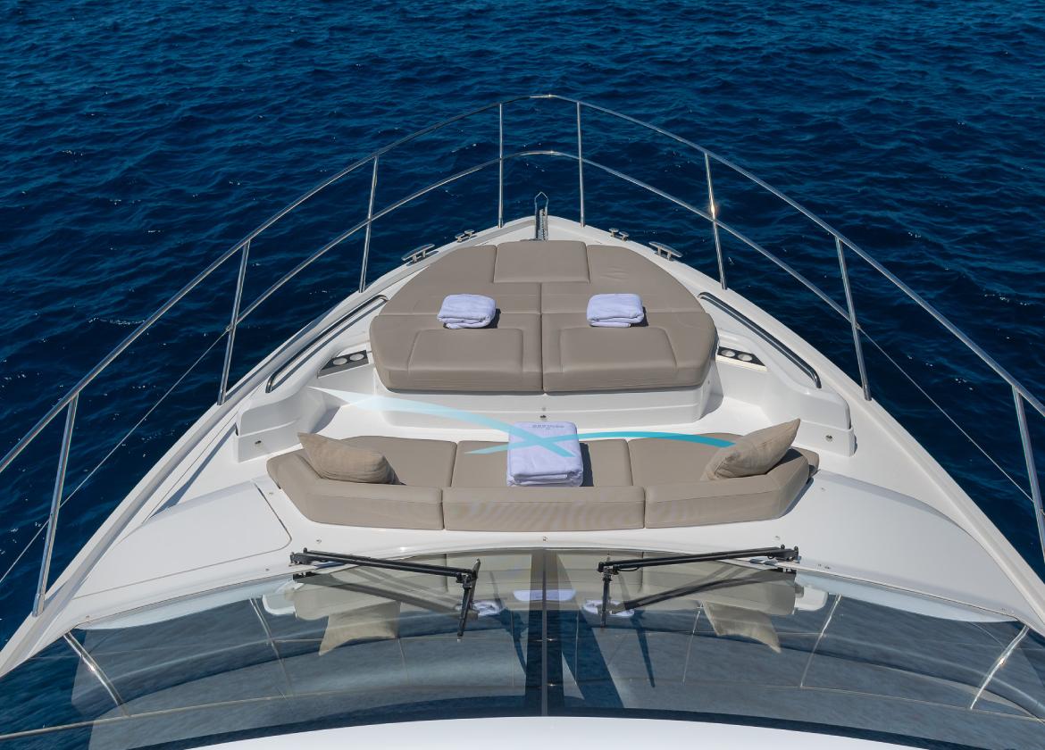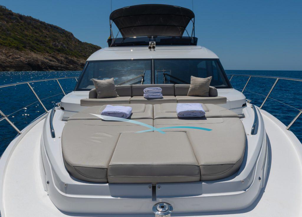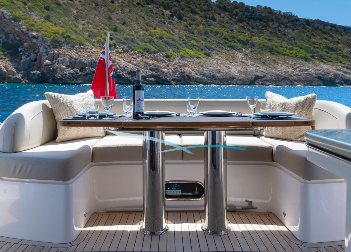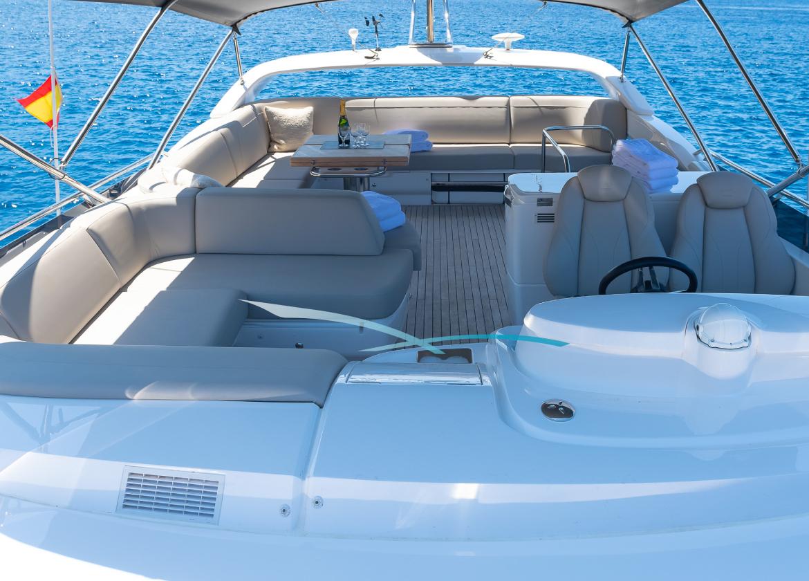 Entdecken Sie die exquisite Princess F55 “Seven” . Diese Flybridge-Motoryacht “Seven”, entworfen von dem renommierten britischen Bootsbauer, setzt neue Maßstäbe in Sachen Luxus und Stil. Mit ihrer hochmodernen Technologie verspricht die Yacht ein unvergessliches Erlebnis auf dem Wasser. Kommen Sie an Bord und entdecken Sie das elegante und moderne Interieur, bei dem jedes Detail sorgfältig durchdacht wurde. Das geräumige Vordeck, die Flybridge und die Cockpit-Lounge bieten reichlich Platz für Entspannung und Unterhaltung. Genießen Sie Ihre Mahlzeiten im Freien mit der praktischen Wet-Bar und dem BBQ-Grill, die Ihr Outdoor-Erlebnis noch verbessern. Die Yacht verfügt zudem über eine hydraulische Badeplattform, die einen einfachen Zugang zum Wasser gewährleistet und Aktivitäten auf dem Wasser zu einem echten Vergnügen macht. Die Princess F55 ist mit einem gyroskopischen Stabilisierungssystem von Seakeeper ausgestattet, das auch in unruhigen Gewässern eine angenehme und ruhige Fahrt gewährleistet. Die nahtlose Integration von Cockpit und Kombüse schafft einen beeindruckenden Unterhaltungsbereich, der sich mit dem von größeren Yachten messen kann. Unter Deck finden Sie drei großzügige, lichtdurchflutete Kabinen, die bis zu sechs Gästen einen ruhigen Rückzugsort bieten. Das Boot steht für Tages- und Mehrtagescharter ab ihrem Heimathafen in Palma de Mallorca zur Verfügung.