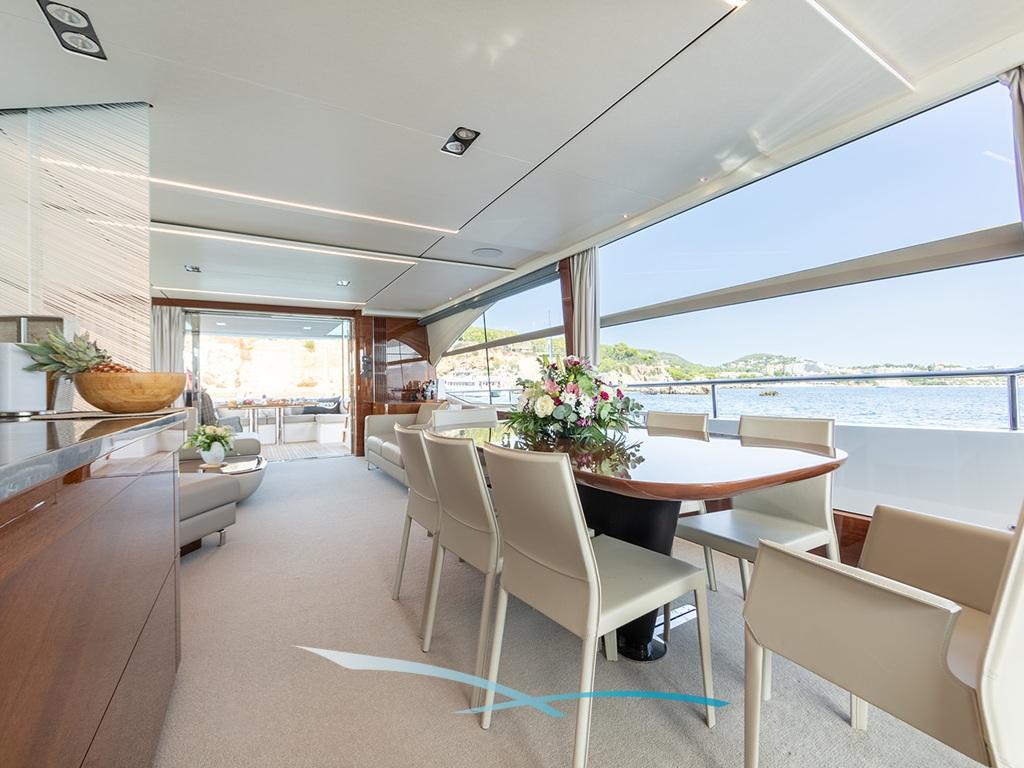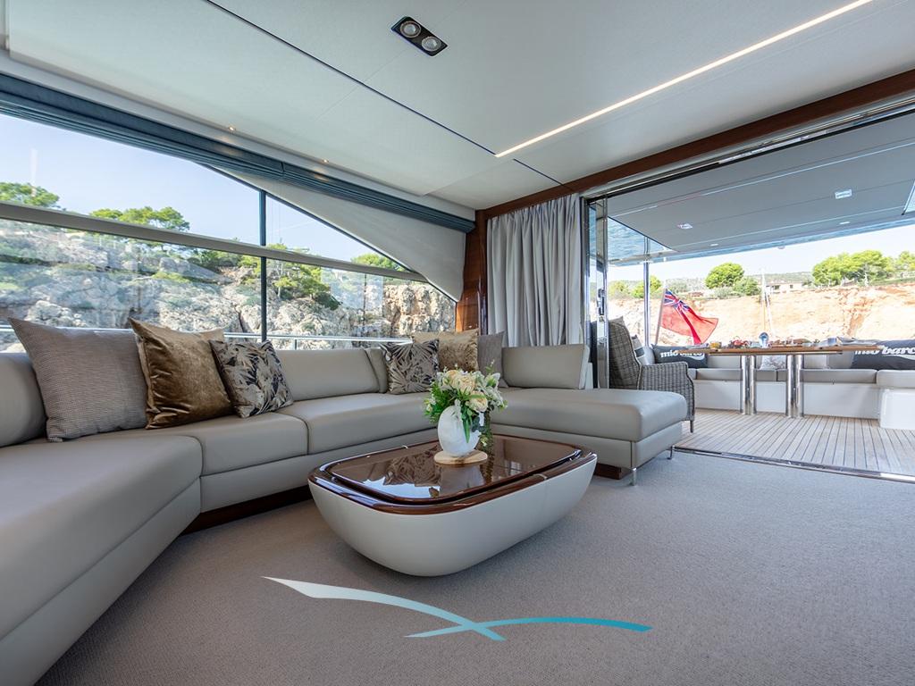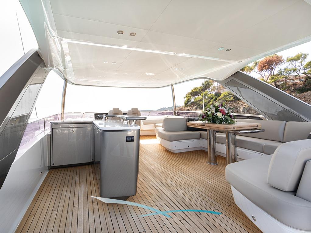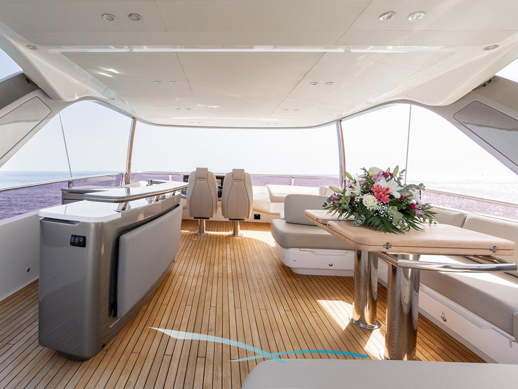 Großzügige Sonnendecks, eine einladende Flybridge und elegante Lounges schaffen den perfekten Rahmen für entspannte Stunden, gesellige Abende und unvergessliche Momente am Wasser. Mit Wassersport-Equipment und Tender steht auch dem Abenteuer in versteckten Buchten nichts im Weg.