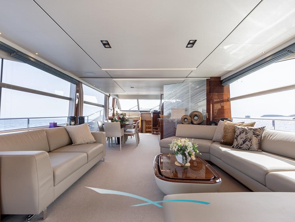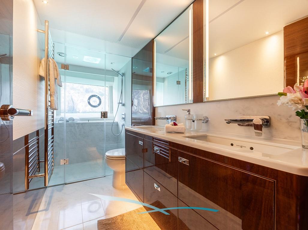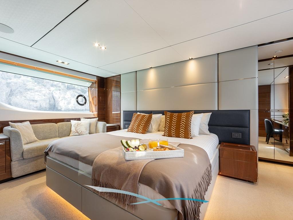 Großzügige Sonnendecks, eine einladende Flybridge und elegante Lounges schaffen den perfekten Rahmen für entspannte Stunden, gesellige Abende und unvergessliche Momente am Wasser. Mit Wassersport-Equipment und Tender steht auch dem Abenteuer in versteckten Buchten nichts im Weg.