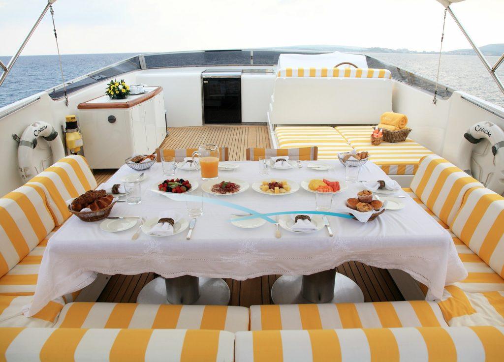 Eleganz trifft Komfort an Bord der stilvollen Motoryacht „Carom“.