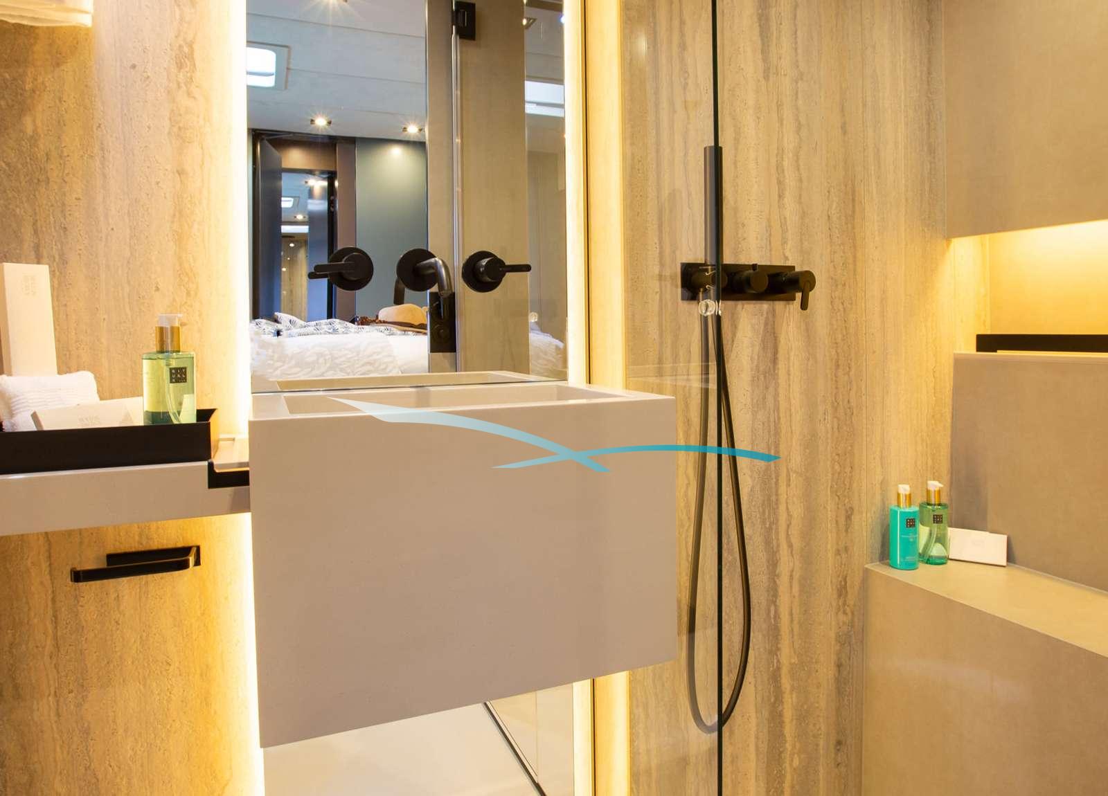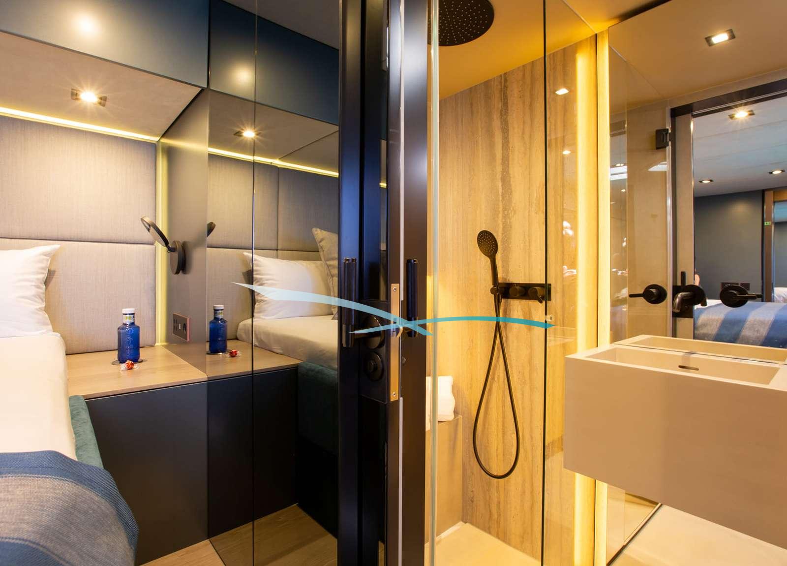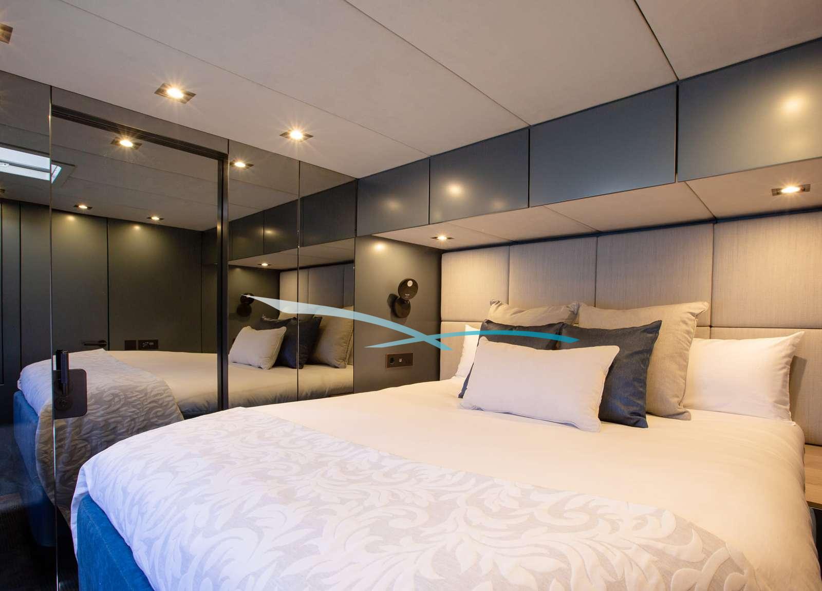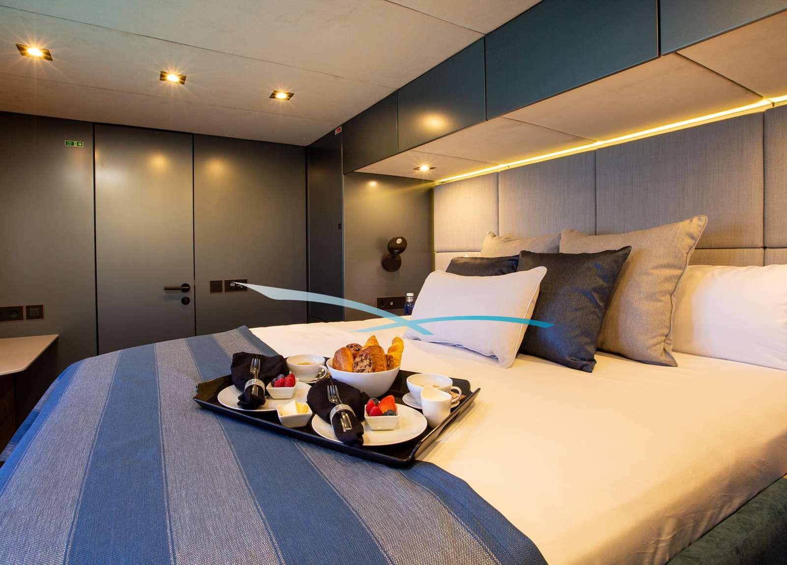 An Bord erwarten Sie vier stilvoll ausgestattete Kabinen für bis zu acht Übernachtungsgäste, während eine dreiköpfige Crew sich um erstklassigen Service und Ihr Wohlbefinden kümmert.