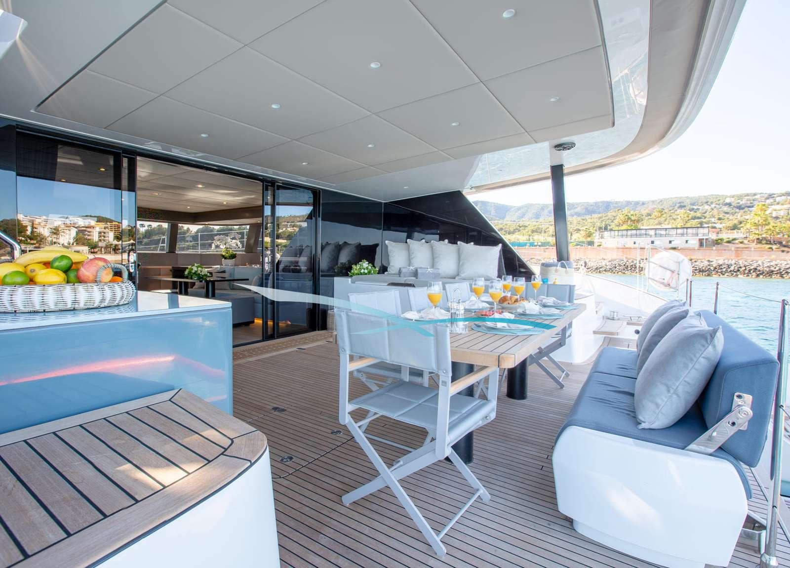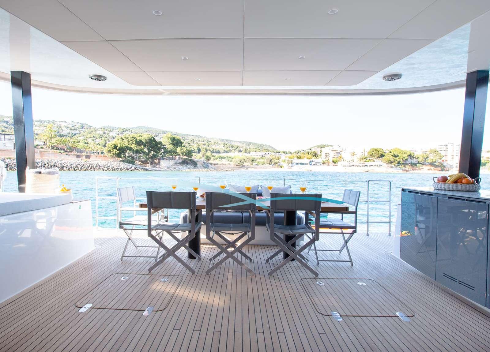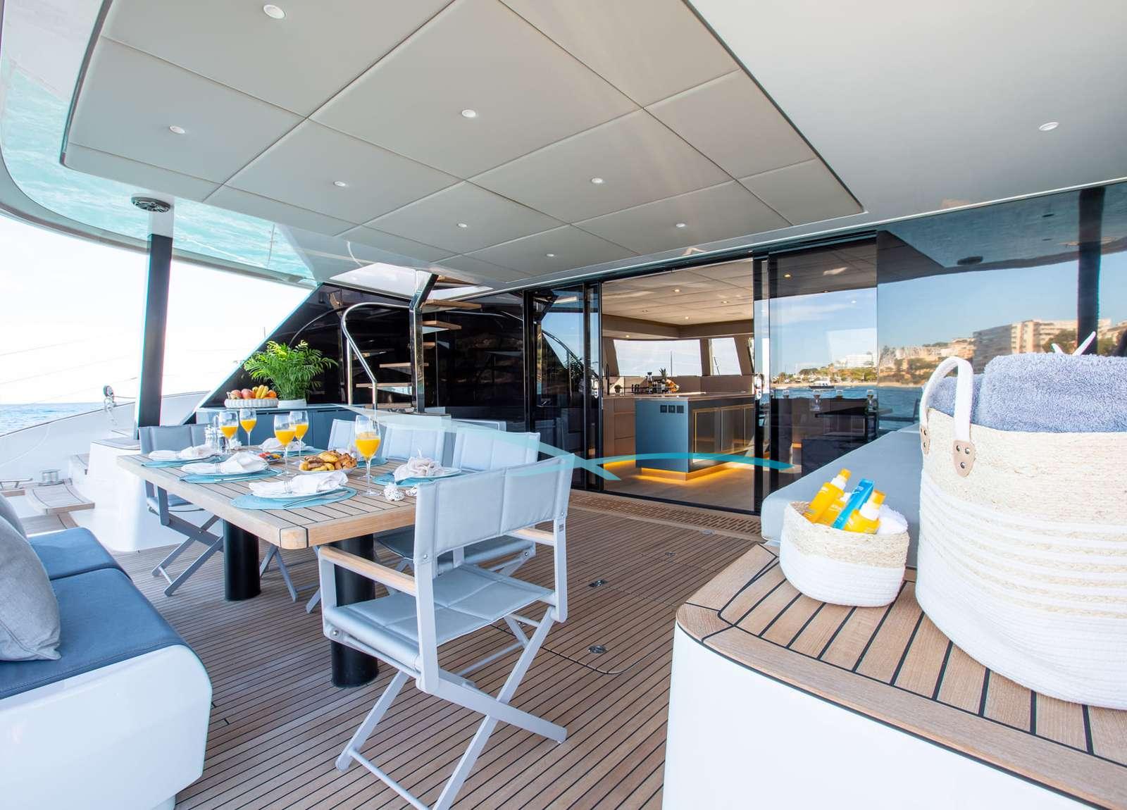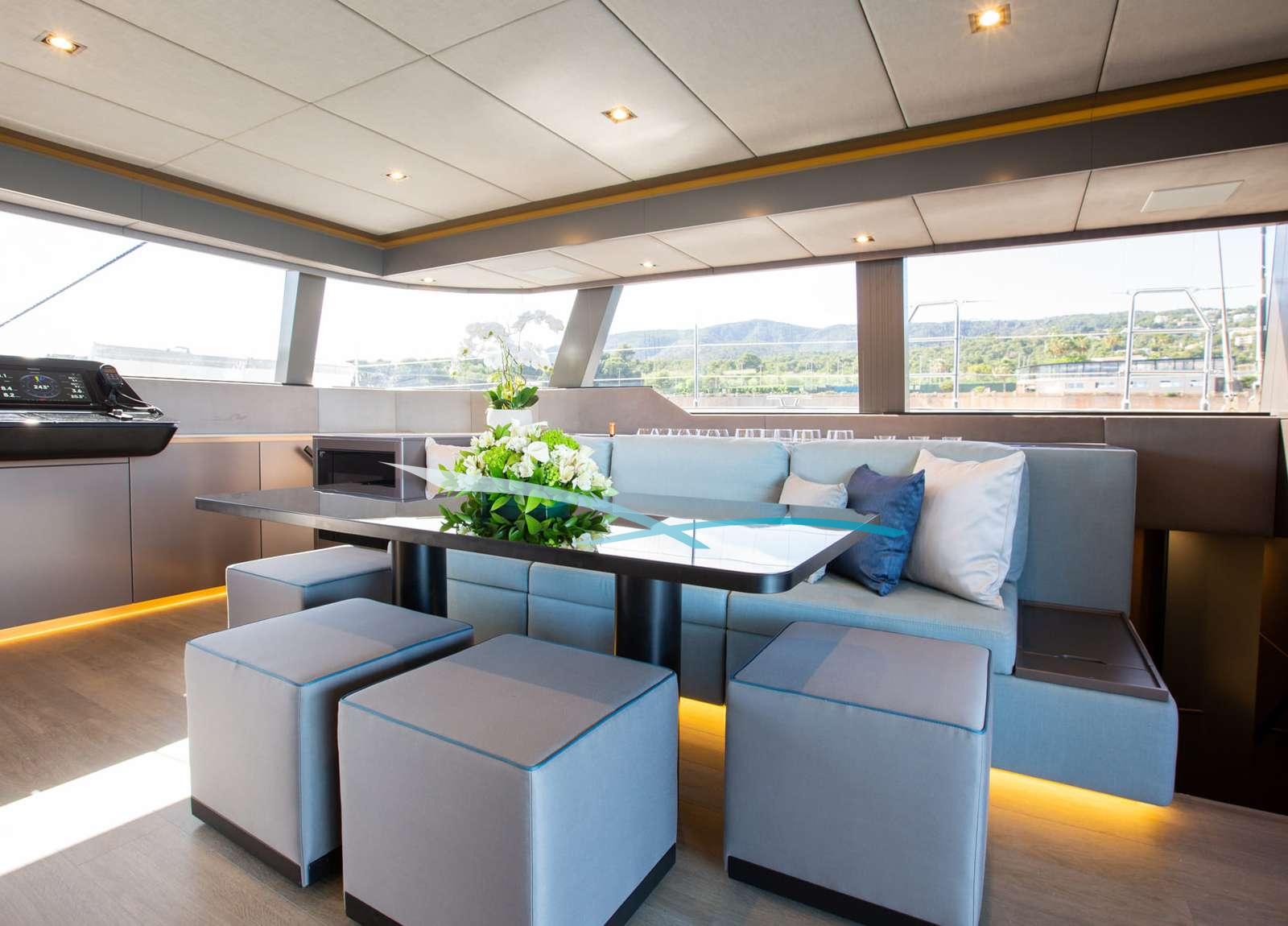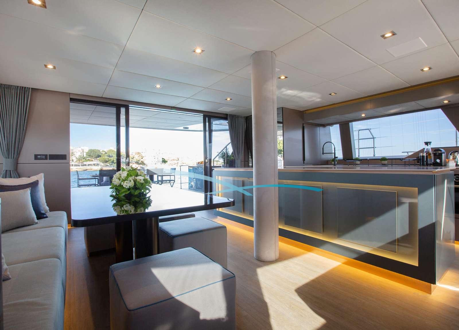 Dieser moderne Katamaran vereint durchdachtes Design mit maximalem Komfort und bietet dank großzügiger Fensterflächen einen fantastischen Panoramablick über das Mittelmeer.