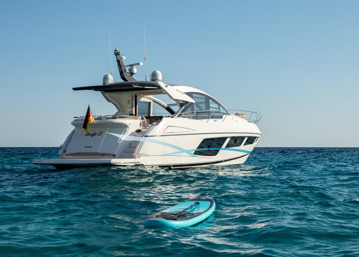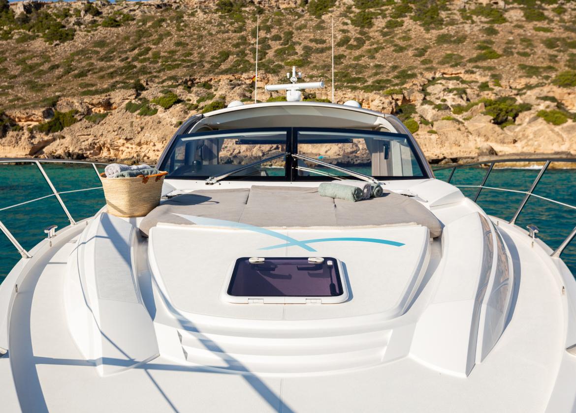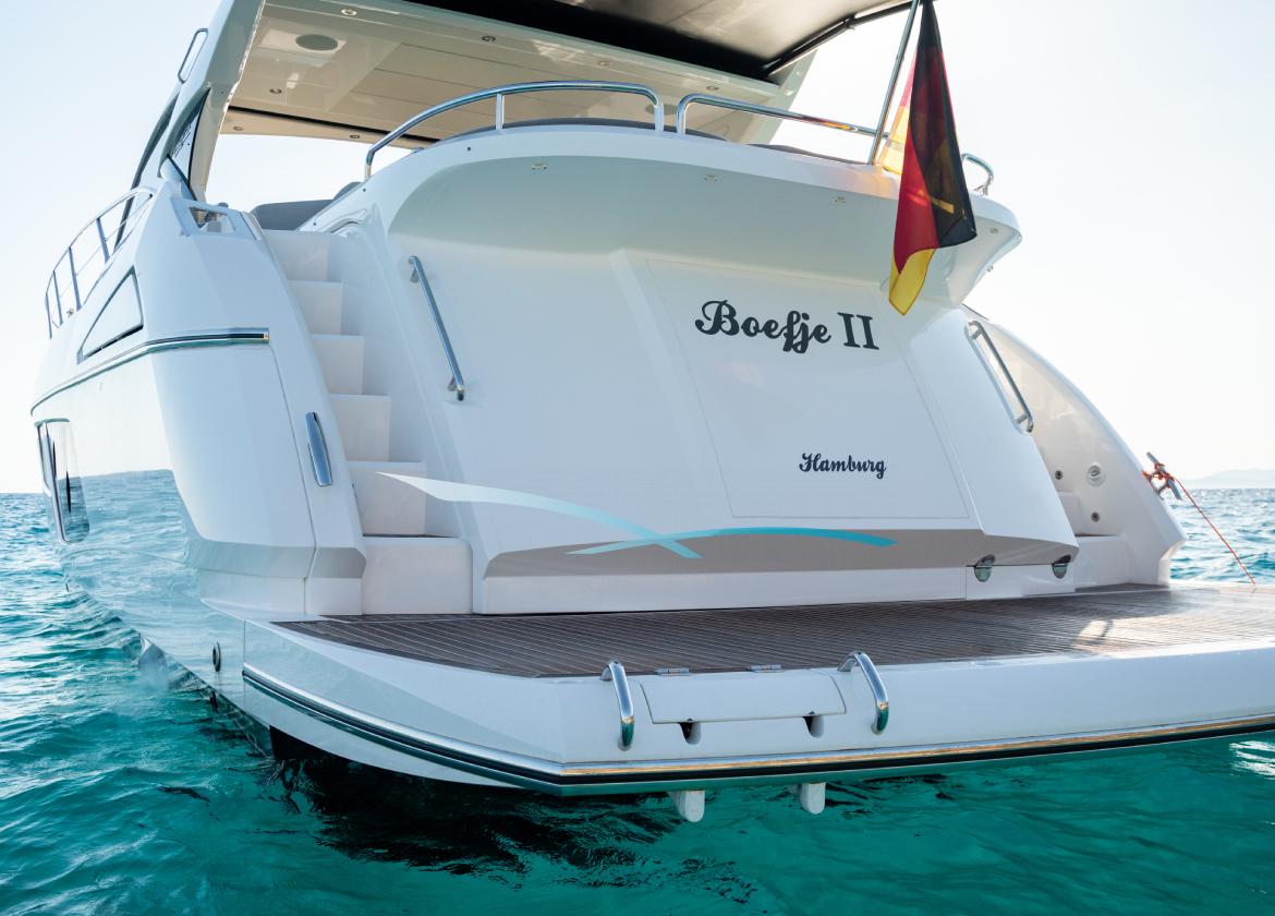 Mit ihrem sportlichen Stil, ihrem markanten Design und ihrem geräumigen Layout ist die Sunseeker Predator 57 “Boefje II” ideal für Tagescharter auf Mallorca. Das zeitlose Design mit neutralen Farben verleiht der Yacht ein stilvolles und mondänes Flair. Am Tag empfängt das 18 meter Boot bis zu zehn Gäste für unvergessliche Törns entlang der malerischen mallorquinischen Küste. Die geräumigen Sonnenliegen am Bug und am Heck der Yacht sind ideal, um sonnige Tage zu genießen, während die Essbereiche im Innen- und Außenbereich dazu einladen, gemeinsam mit Familie und Freunden erfrischende Getränke und leckere Tapas zu genießen. Dank eines Jet-Tenders, eines Donuts und Wasserskis sowie eines Paddelboards und Schnorchelausrüstung ist Boefje II perfekt für Wassersportbegeisterte.