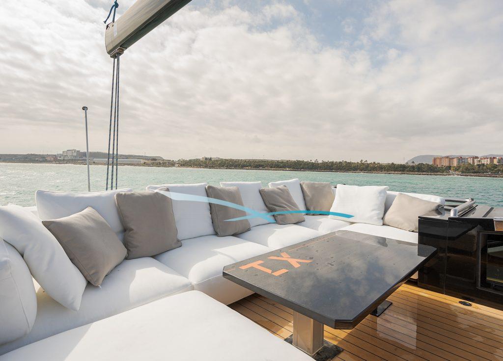 Dank der Glasdachkonstruktion und der übergroßen Seitenfenster erhält der Trimaran viel natürliches Licht. X1 verfügt über Wakeboard und Wasserski für Erwachsene und Kinder sowie über zwei Stand Up Paddle Boards und Schnorchelausrüstung. Jetski (300€/Tag und Seabob (300€/Tag) sind auf Anfrage zusätzlich buchbar. Der Trimaran empfängt bis zu 12 Tagesgäste, die von einer dreiköpfigen Crew betreut werden ob Ibiza, Mallorca oder Formentera – sichern Sie sich Ihren Termin und erleben Sie diesen Sommer einen ganz besonderen Charter.