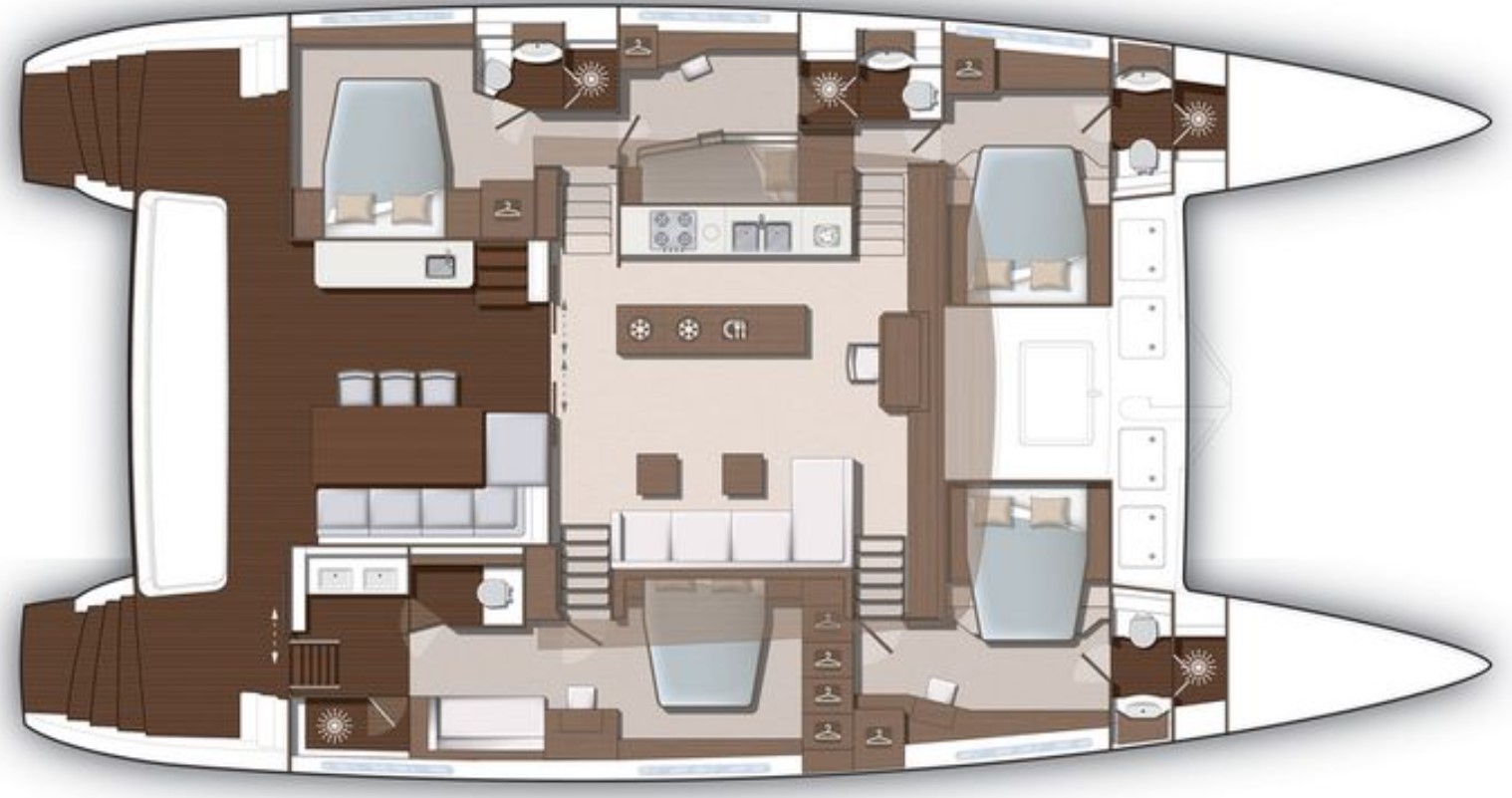 Two of the aft cabins have separate access from the outside so it gives additional privacy.