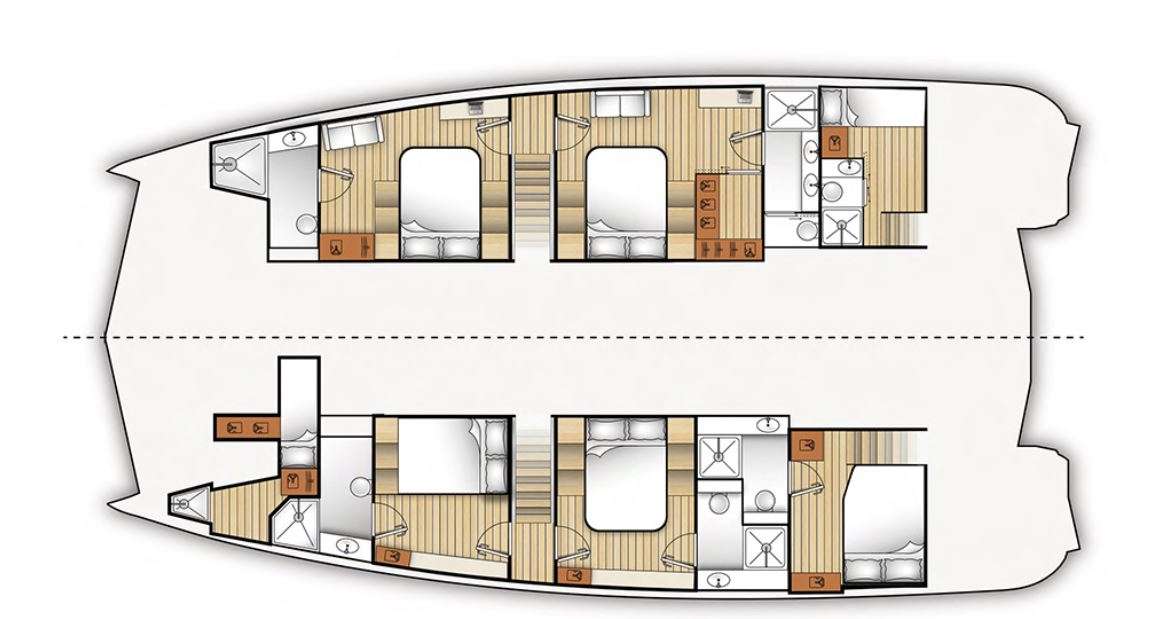 Another highlight is the floating bathing platform. The interior is bright and elegant. Enjoy the best days of the year with family and friends on board of this wonderfull catamaran.