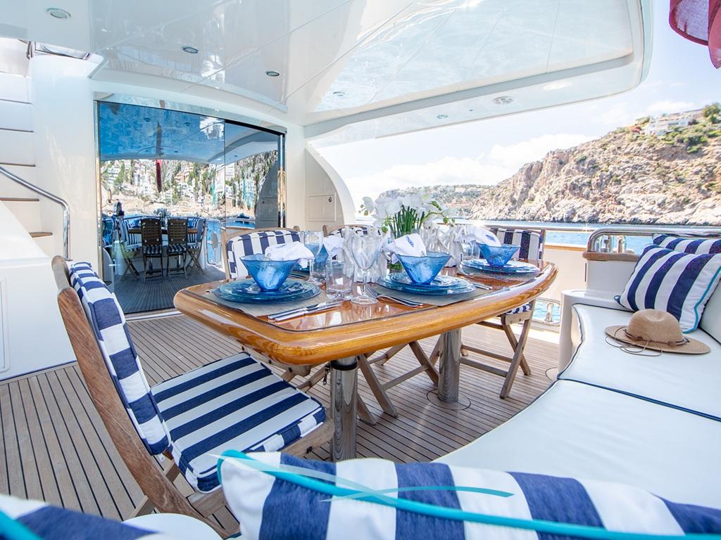 Die in Port d’Andratx gelegene Elegance 78 „Ehthele“ ist seit der Saison 2022 neu auf dem Chartermarkt. Die geräumige Motoryacht, Baujahr 2004, befindet sich in einem sehr guten Zustand und verfügt über eine erfahrene Crew, die sich hervorragend um die Chartergäste kümmert, während die Yacht zu den wunderschönen Flecken der Balearen gleitet.
